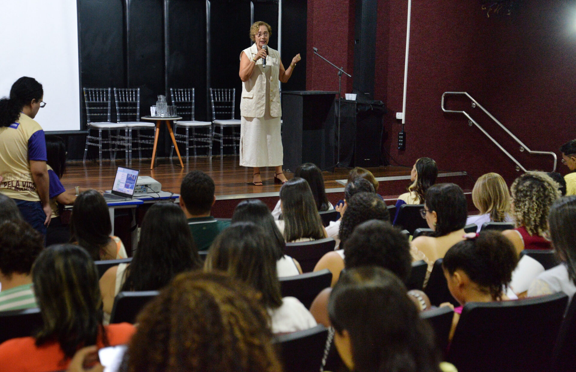 No ambiente escolar, muitas unidades já desenvolvem iniciativas voltadas à valorização da mulher e ao combate às violências de gênero. A coordenadora pedagógica do Colégio Estadual Frei Inocêncio, Wennia da Conceição Santos, relatou que a escola promove atividades educativas integradas a projetos culturais e pedagógicos. “Lá, temos um projeto chamado ‘Cine Negro’, em que ressaltamos a força e o empoderamento da mulher, especialmente da mulher negra, porque também temos o Selo de Escola Antirracista. Durante as aulas, os professores trabalham conteúdos voltados para o combate à violência e para a valorização das mulheres”, relatou.