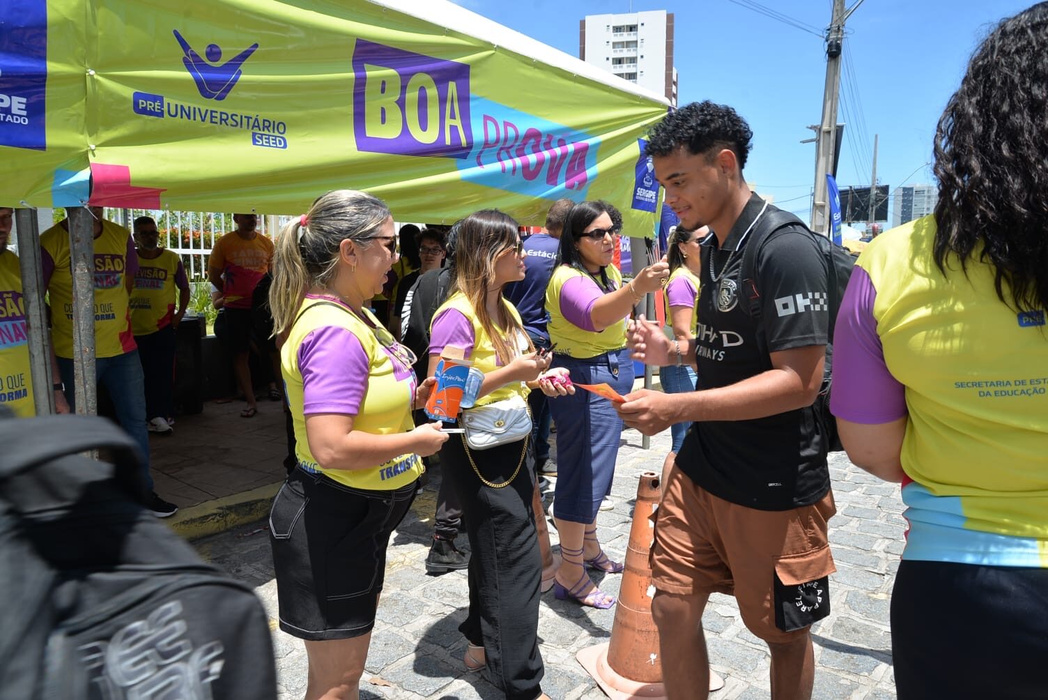 A diretora do Departamento de Apoio ao Sistema Educacional (Dase), Eliane Passos, enfatizou a importância do processo de preparação ao longo do ano para esse dia. “Nós temos profissionais que estiveram com os estudantes durante uma longa jornada de preparação. Esse é um momento importante, o último contato que eles têm com esse mundo externo. E eu penso que contribui para que eles entrem tranquilos, entrem mais seguros de si, de toda a trajetória que eles vivenciaram até agora. A gente faz questão de estar aqui, dando esse apoio para eles nos últimos instantes, disponibilizando uma caneta caso precisem, recepcionando com água, que está muito quente hoje, e até um bombom para energizar. Esse cuidado, esse carinho que a gente tem nesse instante, faz diferença para quem vai entrar para fazer a prova”, reforçou.