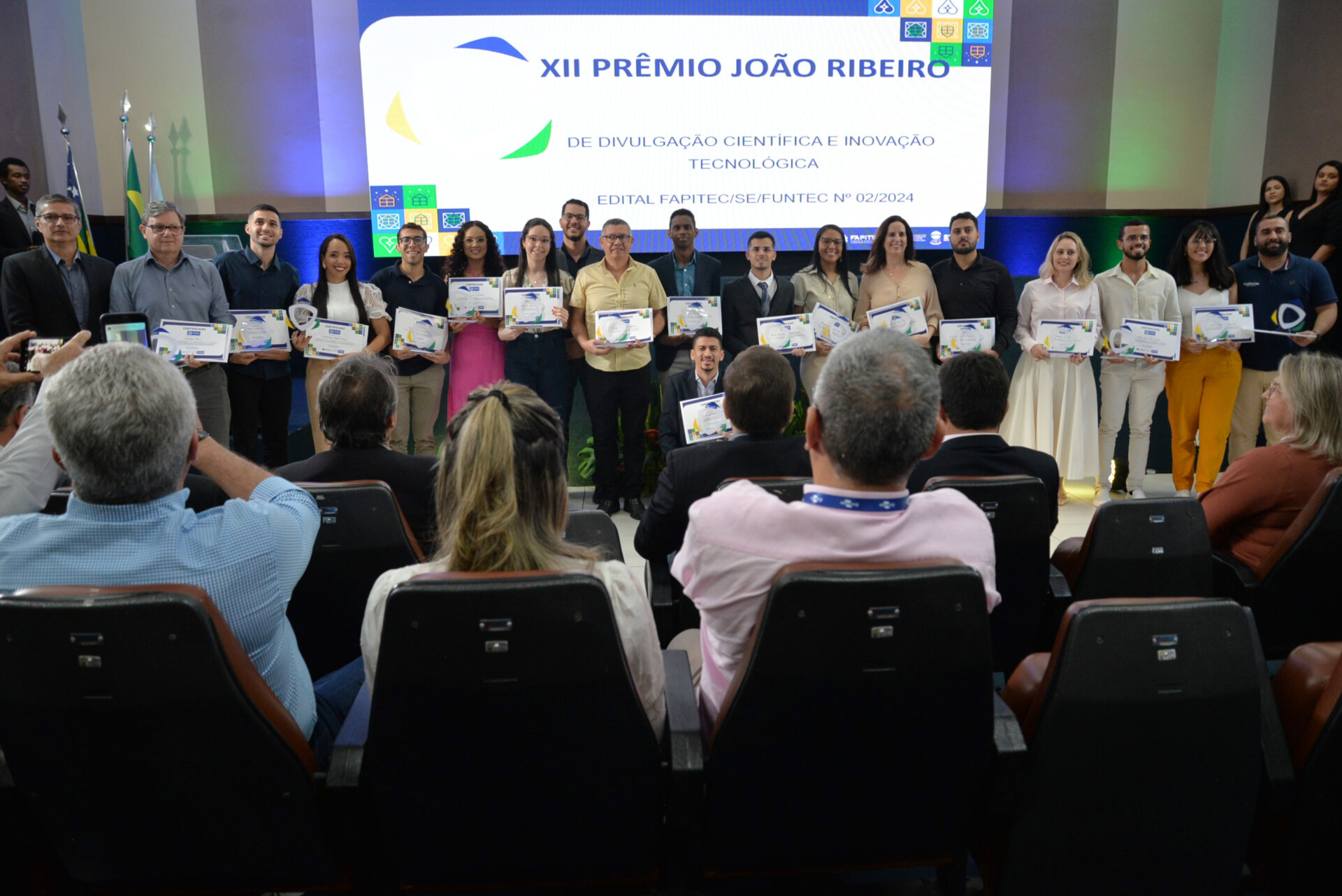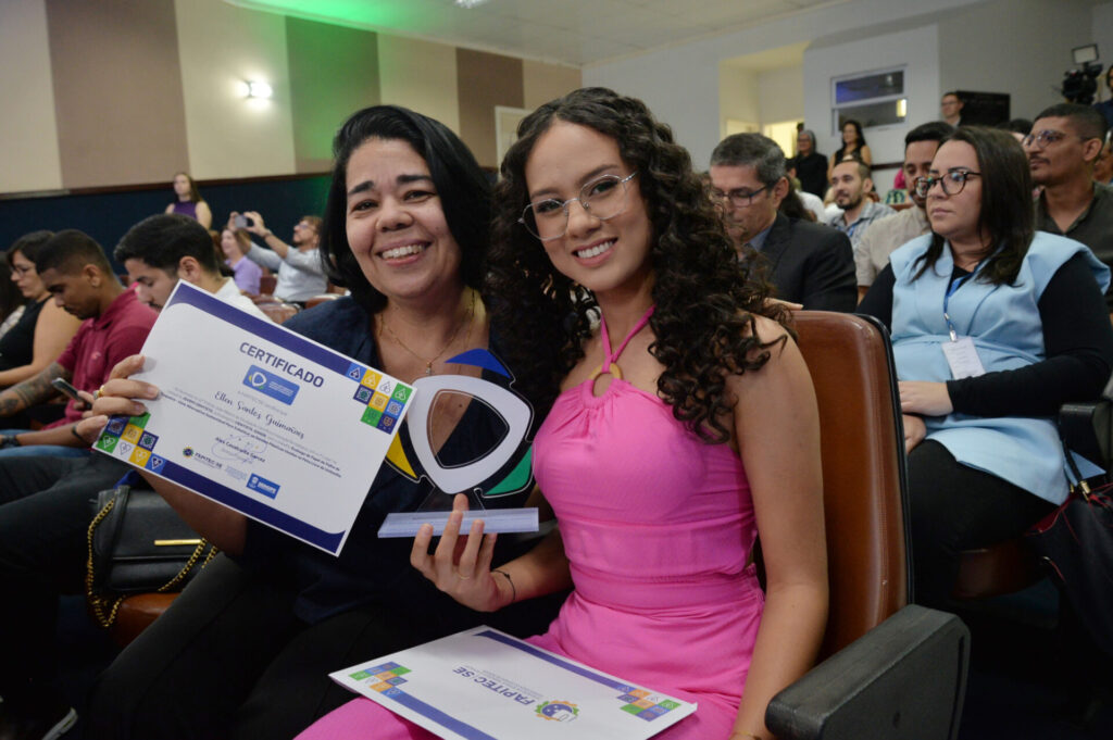 A entrega do Prêmio João Ribeiro de Divulgação Científica e Inovação Tecnológica foi realizada nesta segunda-feira, 26, contando com três alunos da rede pública estadual de ensino. Na categoria Cientista Júnior, em primeiro lugar ficou Eduarda Gois de Jesus, com o projeto ‘Avaliação Temporal da Qualidade da Água do Açude da Macela’, realizado no Colégio Estadual Murilo Braga. Em segundo lugar, a aluna Ellen Santos Guimarães, com ‘Ecobags de Papel de Palha de Coqueiro – Uma Alternativa Sustentável Para Substituir as Sacolas Plásticas Usadas na Feira Livre de Umbaúba’, e em terceiro lugar a ex-aluna Magna Kelly Barbosa dos Santos, com o projeto ‘Estratégias para reflexão e conhecimento compartilhado com adolescentes sobre saúde sexual e reprodutiva’.