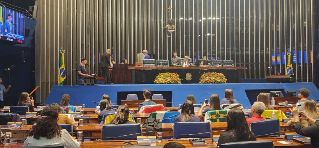 Nesta segunda-feira, 5, os jovens senadores de cada estado tomaram posse, entraram na sessão acompanhados de seus professores orientadores com a bandeira de cada estado, e receberam o diploma e a medalha. “Durante esses dias teremos os debates, conheceremos o congresso, o senado federal, e no final vamos defender nossos projetos e apenas um deles poderá ser incluso e tramitar como uma lei real”, explicou o jovem senador Andrew Sander.