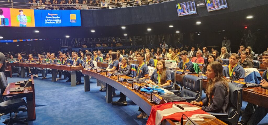 Em Brasília, o estudante Andrew Sander, juntamente com a professora Fabiana dos Santos Sabino e a coordenadora estadual do Programa, Nádia Cardoso, participam da vivência legislativa. O aluno é orientado sobre como atuar como representante de seu estado durante as sessões plenárias e reuniões das comissões temáticas. No fim de semana, o jovem senador irá discutir sobre vários temas, com o objetivo de escrever um projeto de lei que vise à melhoria em algum aspecto do Brasil.