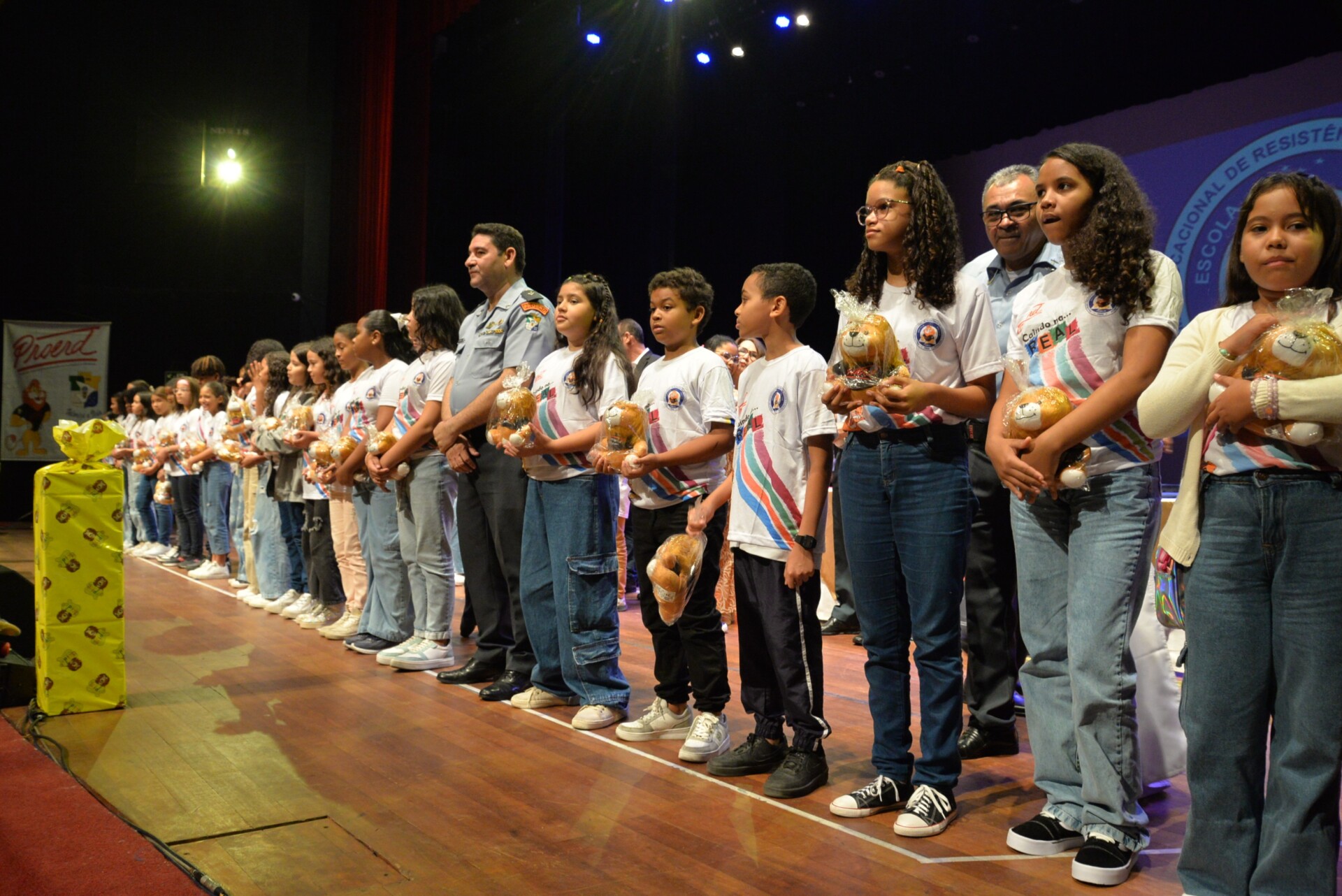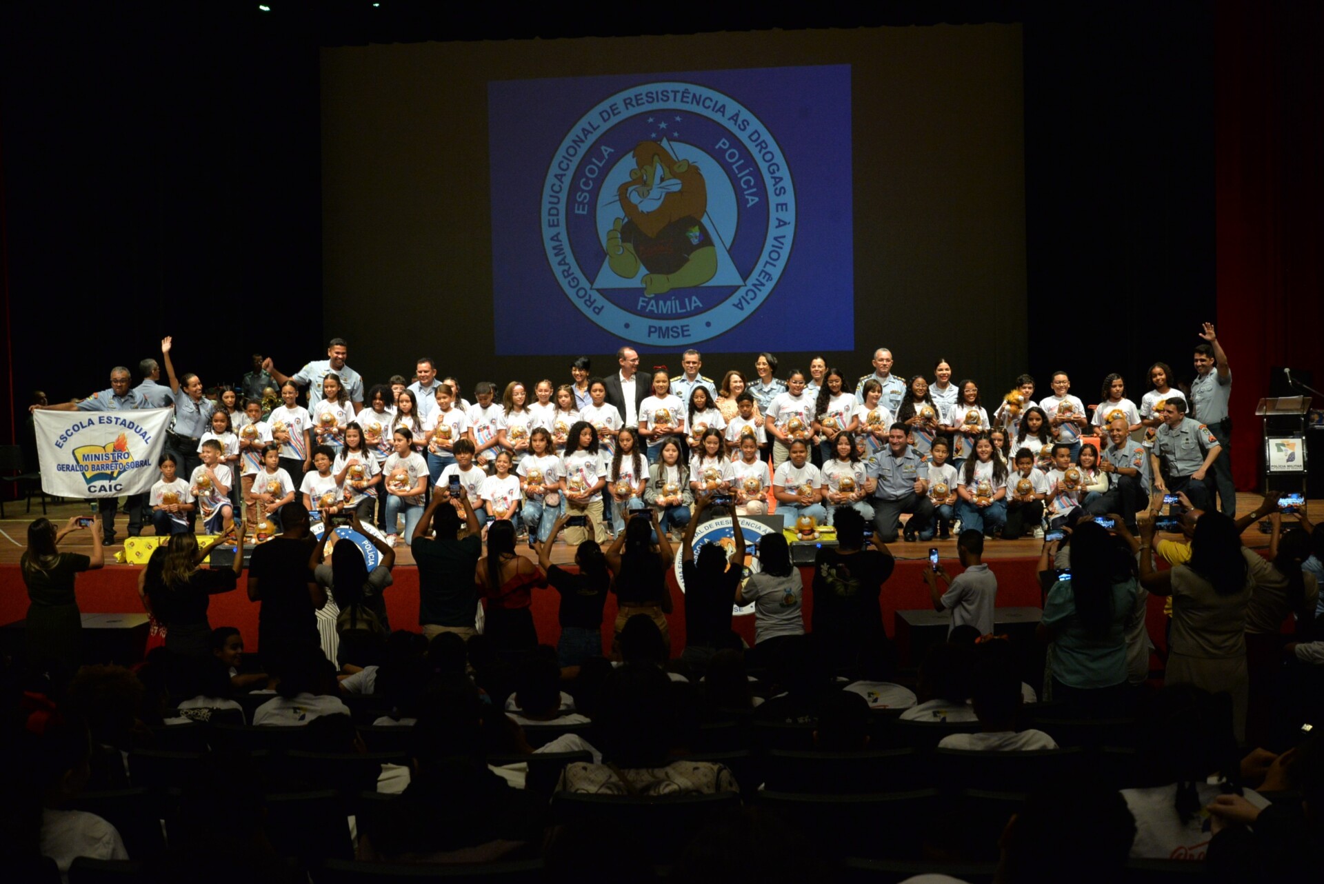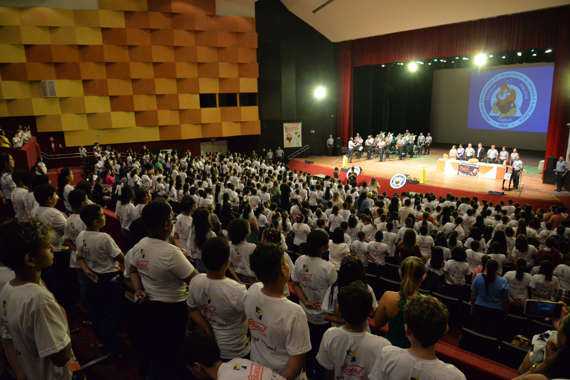 A Secretaria de Estado da Educação (Seed) e a Polícia Militar de Sergipe (PMSE) realizaram, na manhã desta quarta-feira, 4, no Teatro Tobias Barreto, em Aracaju, a solenidade de formatura geral dos estudantes atendidos pelo Programa Educacional de Resistência às Drogas e à Violência (Proerd). A celebração marcou a formação de mais de 1.000 alunos do 5º ano do Ensino Fundamental de sete escolas estaduais.