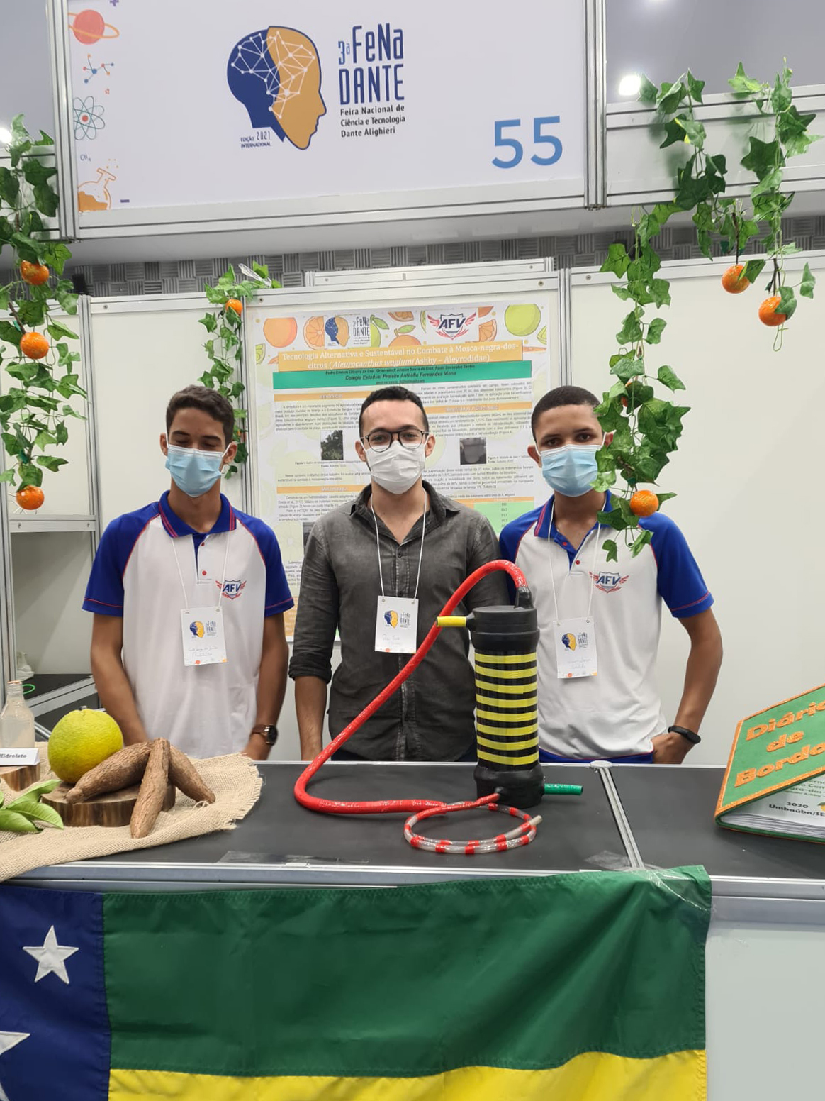 A Feira Nacional de Ciências e Tecnologia Dante Alighieri aconteceu no Colégio Dante Alighieri, localizado na cidade de São Paulo (SP), no período de 20 a 25 de setembro. Essa terceira edição foi internacional, dando a oportunidade de os alunos competirem com jovens de outros países. Os estudantes foram acompanhados pelo professor de Química, Pedro Ernesto Oliveira da Cruz, que foi o orientador do projeto que representou Sergipe no evento científico. O trabalho apresentado foi o projeto “Tecnologia Alternativa e Sustentável no Combate à Mosca-negra-dos-citros”, um inseto que tem afetado a produção da laranja na região onde eles moram, tornando-a imprópria para o consumo e para a venda.