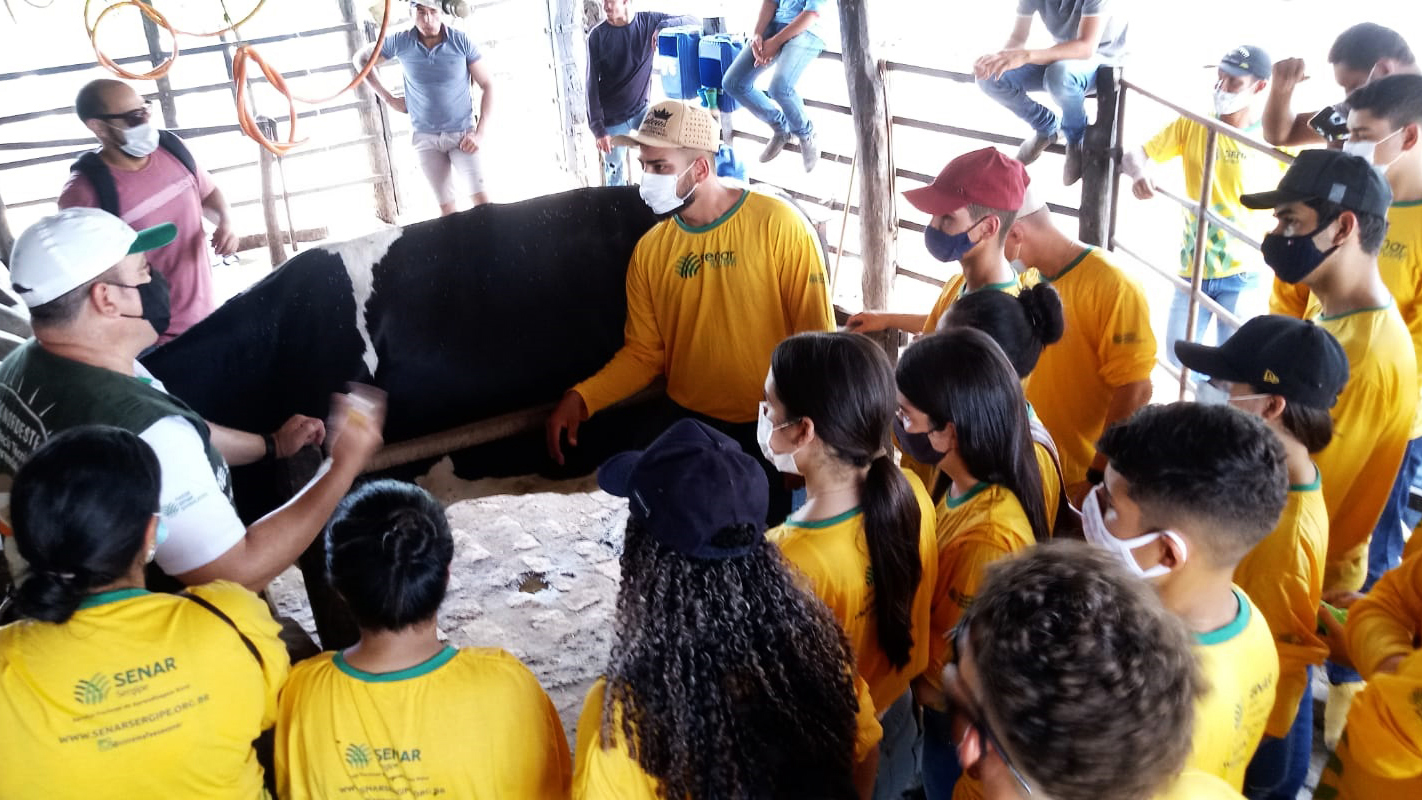 Uma das parcerias fomentada pelo Serviço Nacional de Aprendizagem Rural e pela Educação Estadual é o curso técnico de Bovinocultura Leiteira, em andamento na cidade de Porto da Folha. “Essa é a segunda turma de alunos da DRE 7 resultado dessa parceria, em 2021 foi no município de Nossa Senhora de Lourdes e agora em Porto da Folha”, explicou a diretora Regional de Educação da DRE 7, Elaine Melo.