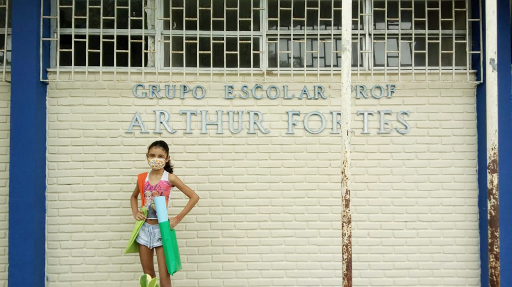 Os alunos pegam cinco livros emprestados e, à medida que forem lendo, devolvem à escola e pegam mais cinco. A meta é que cada um leia 30 livros durante o ano inteiro. Após a leitura, eles escolhem uma das cinco obras e escrevem um texto sobre a história que leu. A professora explica que antes, quando as aulas eram presenciais, acontecia a roda de leitura na praça. Agora, com as aulas online, cada criança vai gravar um vídeo contando sobre um dos livros que leu e enviar para a professora a fim de ser avaliado.
