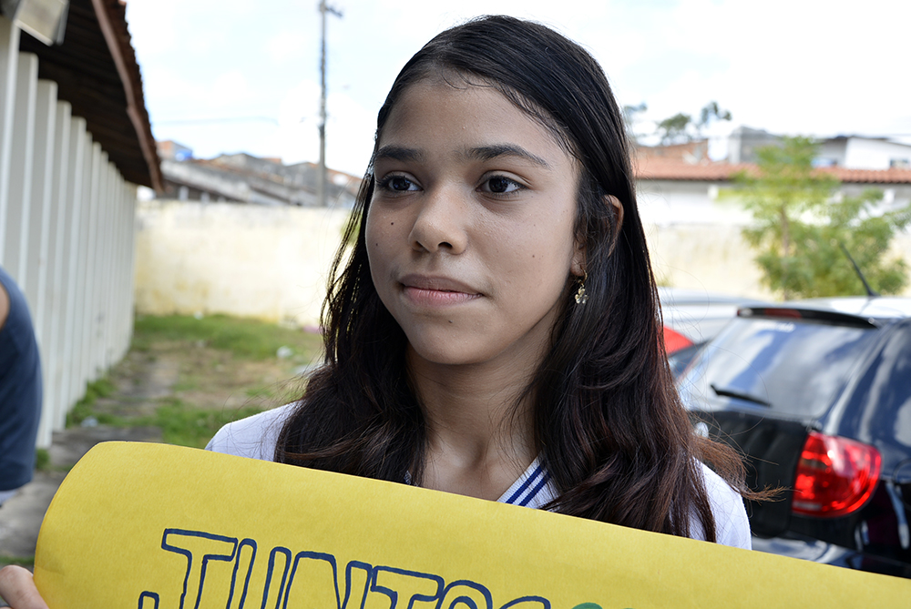Os alunos que participaram da caminhada ressaltaram a importância de sensibilizarem a comunidade do entorno. Foi o caso de Aline Estefane Machado Figueiredo, do 9º ano.