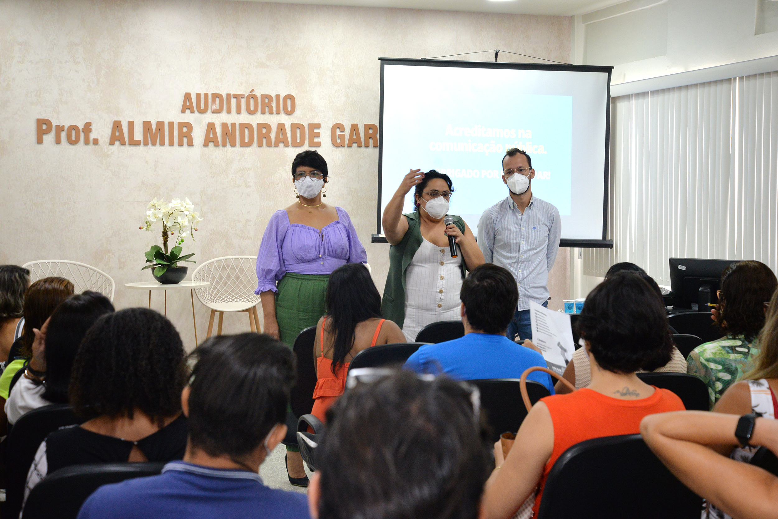 Ao ministrar a palestra, Gleice Queiroz discorreu sobre o fluxo da comunicação e as narrativas produzidas pela Ascom nas diversas plataformas, principalmente digitais, a exemplo do site, revista impressa, Instagram, Facebook, TikTok, YouTube, streaming, disponíveis não somente para divulgar as ações educativas, como também para contar a história dos estudantes, professores e demais membros da comunidade escolar, a fim de potencializar a voz de quem atua diretamente na escola e consequentemente a representa.