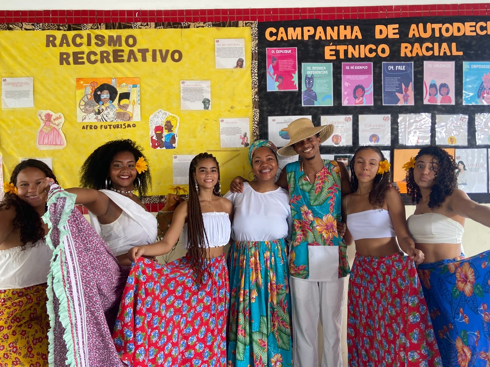 O projeto mobiliza toda a comunidade escolar, com ampla adesão dos estudantes, como os amigos João Ruan Martins, Luana de Oliveira e Ithalo Sodré, os quais estão no 3º ano do Ensino Médio. João Ruan contou que aprendeu sobre as culturas e vivências africanas e indígenas. “Aprendi muitos conceitos e pude inteligir um outro mundo. Outra gratificação que tenho ao projeto é a apresentação à literatura negra, que foi onde mais me aprofundei, e pude ler autores como Mbembe, Fanon, Djamila e Beatriz Nascimento”, relatou o estudante, complementando que foi em razão dessas leituras que ele decidiu o curso de faculdade.