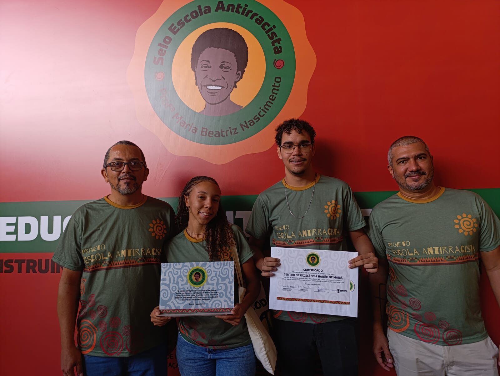 Dos 170 colégios contemplados com o Selo Escola Antirracista Professora Maria Beatriz Nascimento, em 2024, dez foram selecionados para apresentar suas iniciativas voltadas às culturas afro-brasileira e indígena. O Centro de Excelência Barão de Mauá construiu o projeto ‘Escola Antirracista’, que abordou, ao longo de 2024, o tema ‘Combate ao Racismo Recreativo’, premiado com o ‘Selo’.