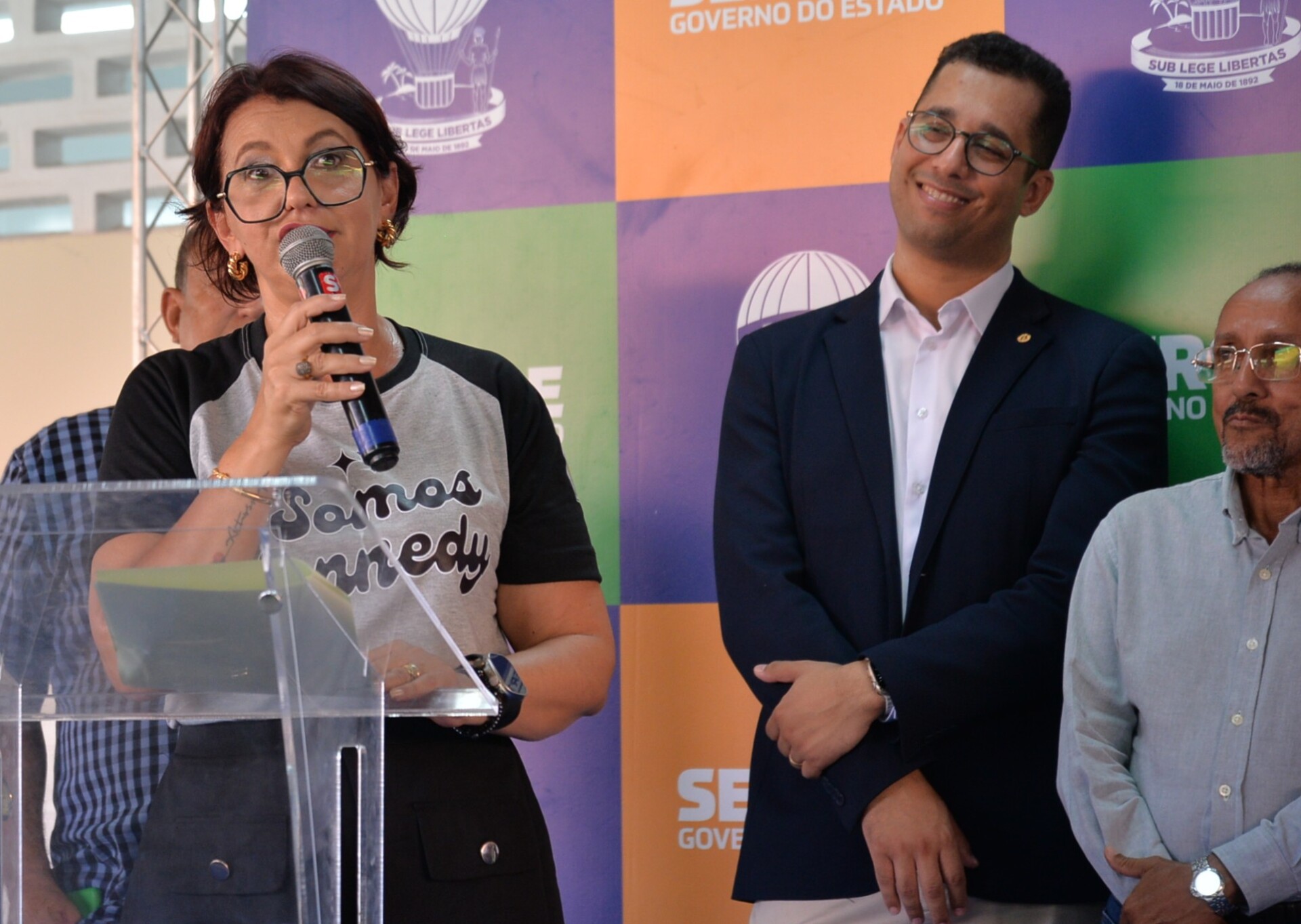 “Escrevemos uma bela história no prédio temporário do Colégio 15 de Outubro e, hoje, estamos reconstruindo a nossa história. O John Kennedy volta para casa”. Com essas palavras, a diretora do Centro de Excelência John Kennedy, Armênia Ribeiro, marcou a solenidade de entrega da reforma da unidade de ensino, localizada no bairro Getúlio Vargas, em Aracaju, nesta quinta-feira, 12. A inauguração foi bastante esperada pela comunidade escolar e pela população, por ser uma escola da rede pública estadual de ensino que sofreu interrupções na obra.