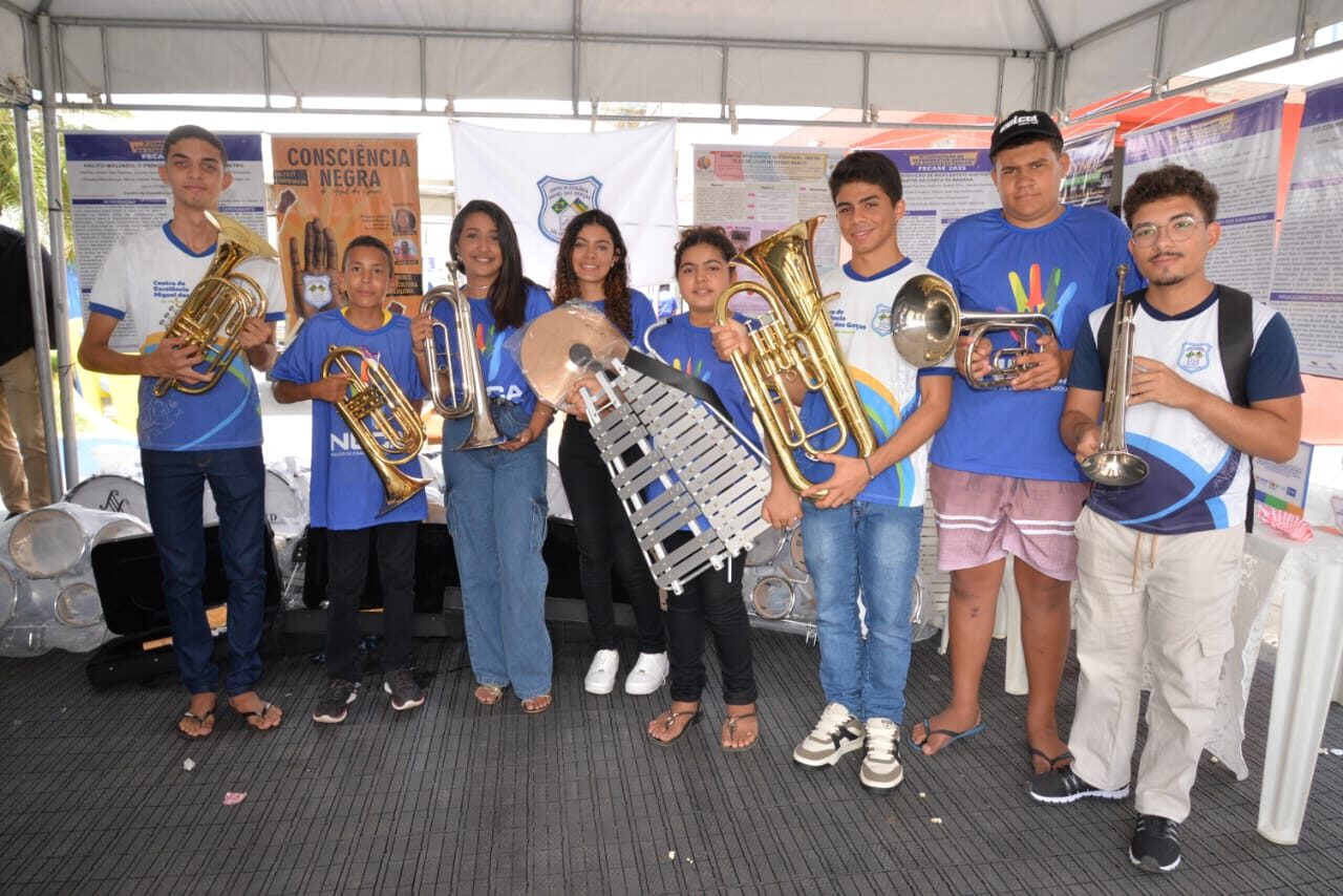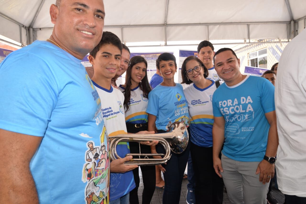 O Governo de Sergipe, por meio da Secretaria de Estado da Educação (Seed), realizou a entrega de um conjunto de instrumentos musicais ao Centro de Excelência Miguel das Graças, no município de São Miguel do Aleixo, com o objetivo de fortalecer as atividades pedagógicas e culturais desenvolvidas pela unidade de ensino. Ao todo, foram entregues instrumentos de percussão, metais e melódicos, que passam a integrar o acervo da escola, contribuindo para a formação artística dos estudantes e para o incentivo à participação em bandas e projetos musicais.