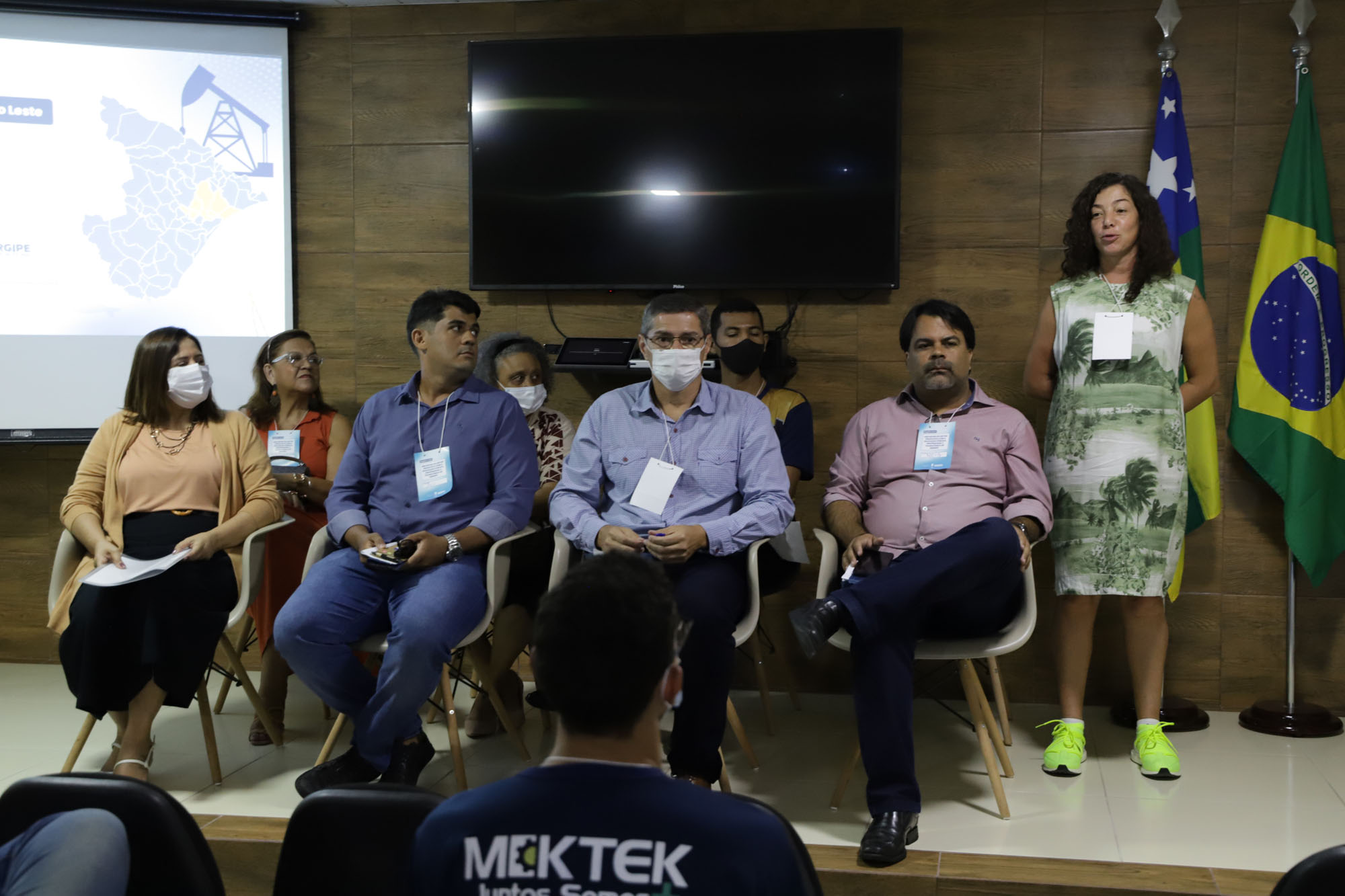 Nesse contexto, a pesquisadora Handresha da Rocha Santos compartilhou com os participantes o resultado de seu trabalho com a apresentação das potencialidades produtivas do Leste sergipano. Ela pontuou as atividades econômicas atualmente em voga em contrapartida daquelas atividades que não têm assessoria técnica para qualificar o serviço, como ocorre com o artesanato local. Por anos, os trabalhadores do Leste de Sergipe destacam-se no cultivo da mandioca, cana-de-açúcar e de aves, e atualmente o desenvolvimento econômico local está baseado na exploração de recursos minerais.