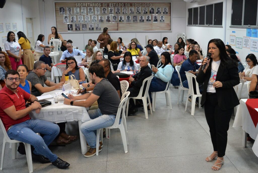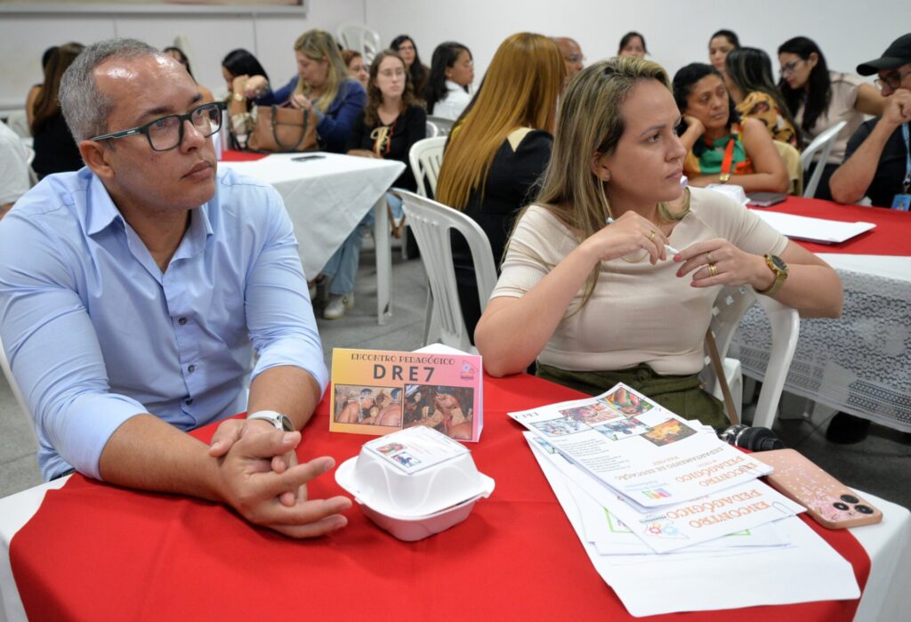 A Secretaria de Estado da Educação e da Cultura (Seduc), por meio do Departamento de Educação (DED), realizou na manhã desta quarta-feira, 21, o ‘Encontro Pedagógico – 4º Ciclo’. O evento reuniu diretores, professores, técnicos e coordenadores pedagógicos para apresentar boas práticas educacionais implementadas ao longo do ano letivo e refletir sobre o impacto do acompanhamento no risco escolar.