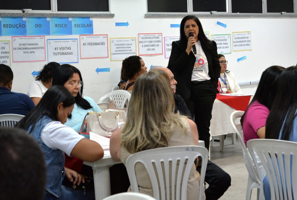 Ana Cristina Dantas, diretora do Serviço de Planejamento e Ensino (Seplen) da Diretoria de Educação de Aracaju, destacou a importância da reunião para fortalecer o acompanhamento técnico-pedagógico e apresentar o ‘Guia de Acompanhamento Pedagógico’. “Esse guia e seus instrumentais são essenciais para aprimorar o trabalho dos coordenadores e monitorar os indicadores de forma mais eficaz. Além de conhecer os indicadores, é crucial ter mecanismos de intervenção nos processos educacionais”, disse.