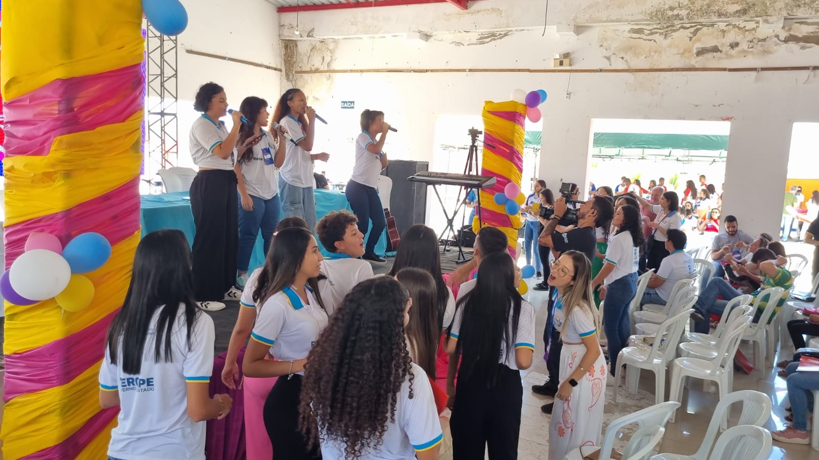 Mais de 400 estudantes das redes públicas de ensino participaram nesta sexta-feira, 17, do I Encontro Regional de Jovens Pensadores, realizado no Espaço de Eventos Spazio JM, bairro Lagoa Salgada, em Porto da Folha. O evento estudantil foi concebido a partir de discussões entre os jovens do Centro de Excelência Governador Lourival Baptista, que queriam um momento de interação e compartilhamento de ações. Os jovens são residentes dos municípios de Nossa Senhora de Lourdes, Porto da Folha e Gararu, circunscritos à Diretoria Regional de Educação 7 – Alto Sertão Sergipano.