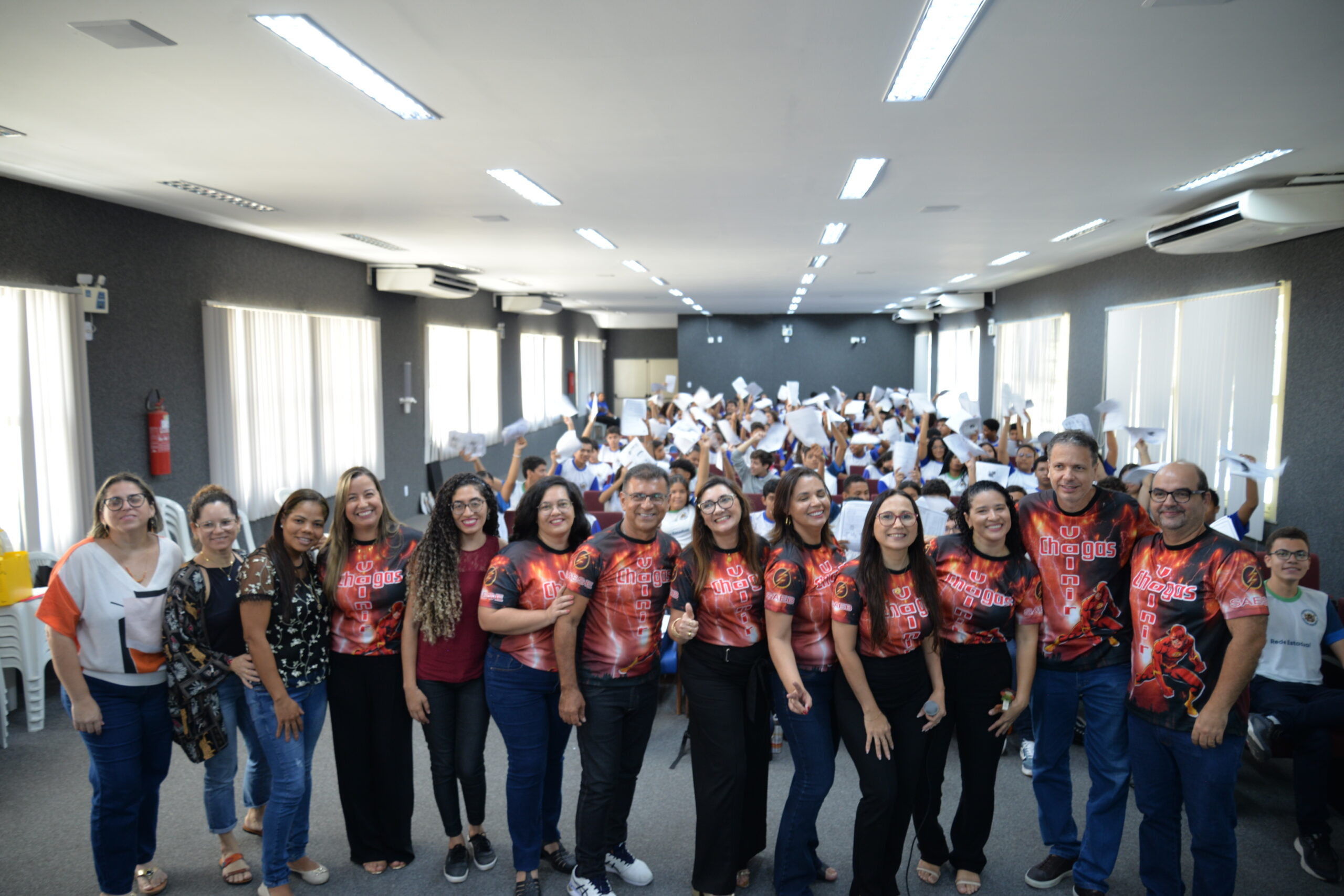 Na busca pelo melhor rendimento dos alunos no simulado do Sistema de Avaliação da Educação Básica de Sergipe (Saese) e do Sistema de Avaliação da educação Básica (Saeb), a Escola Estadual Professor Valnir Chagas, localizada em Aracaju, realizou no Auditório do Centro de Excelência Atheneu Sergipense um aulão preparatório para os alunos do 9º ano do ensino fundamental e para alunos da fase quatro do Prosic, que são aqueles estudantes com distorção idade/série e que frequentam turmas de correção de fluxo. O evento foi totalmente voltado para preparar os estudantes para as provas de matemática e língua portuguesa, e contou com a participação dos professores Breno Wendell, Eduardo Rolemberg, Mari Meneses e Tasquia Teles.