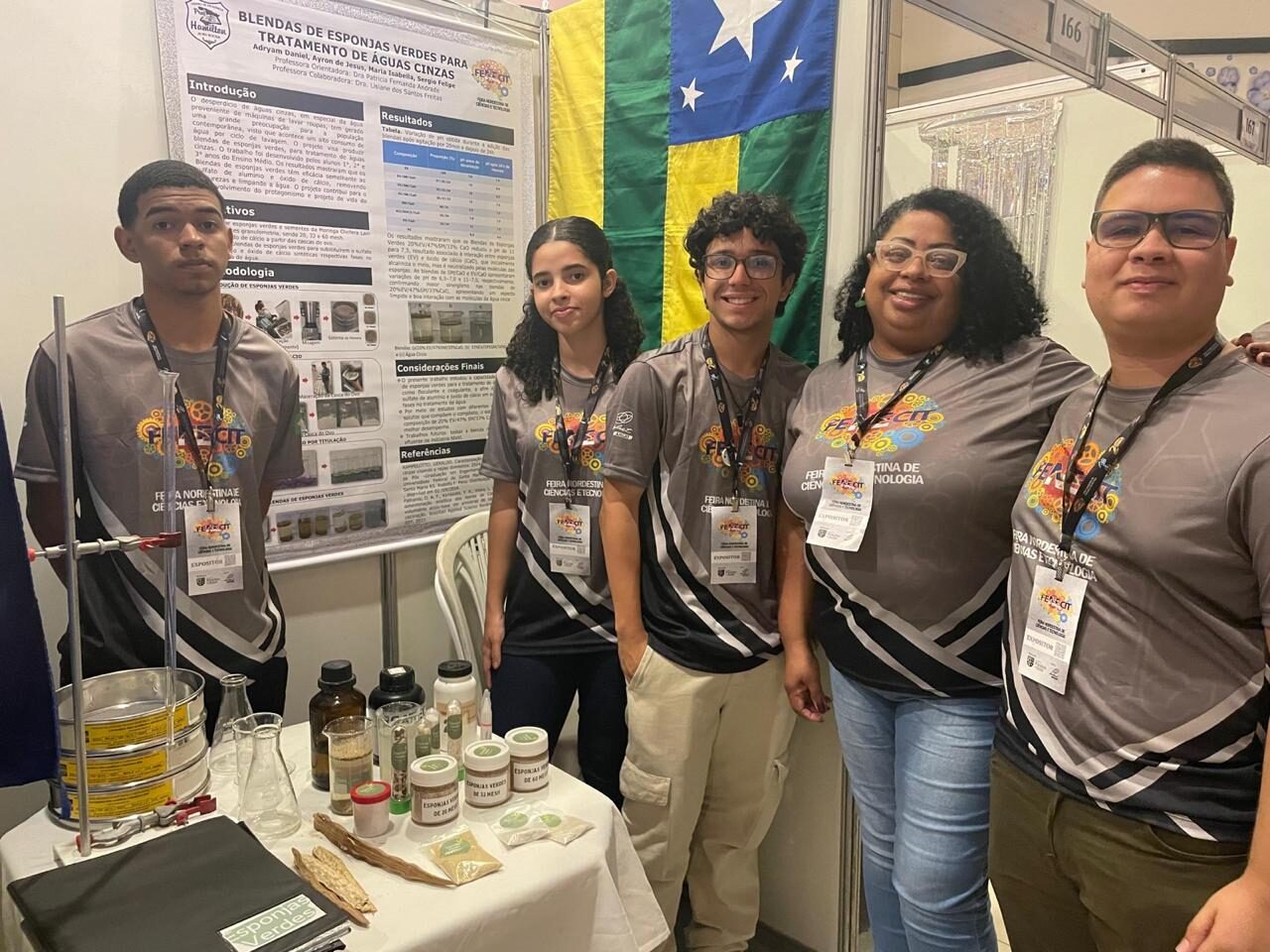 O Centro de Excelência Hamilton Alves Rocha participou com o projeto ‘Blendas de esponjas verdes para tratamento de águas cinzas’, orientado pela professora Patrícia Andrade e executado pelos alunos Adryam Ferreira, Nelson Silva, Ayron Machado e Maria Isabella Andrade.