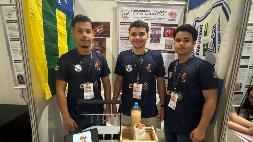 O Colégio Estadual João Salonio apresentou o projeto ‘Ecomandioca: inovação sustentável da roça’, desenvolvido pelos alunos Antônio Souza, Miguel Passos e Luiz Henrique Carvalho, sob orientação do professor Ivanildo dos Santos.