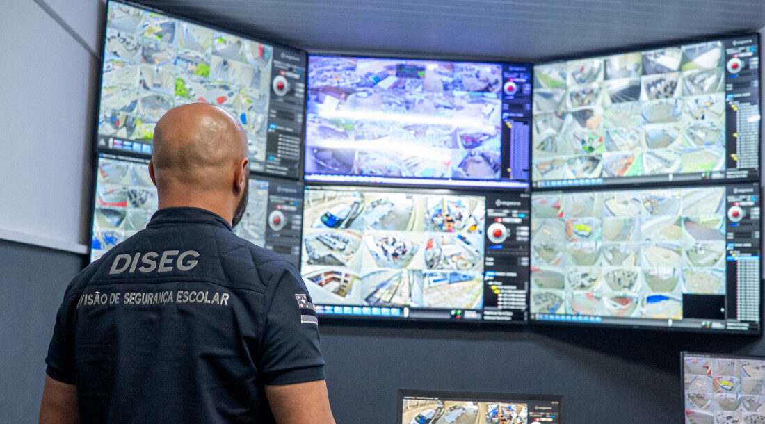 O sistema de videomonitoramento é primordial para o trabalho, inclusive para reduzir a necessidade de presença física e, ao mesmo tempo, abranger uma área maior. Todas as 318 escolas da rede contam com ele, dando 100% de cobertura às unidades. Na Divisão de Segurança Escolar, é feito o espelhamento da central, uma espécie de suporte remoto. A responsabilidade pelo monitoramento é de uma empresa prestadora de serviços, que recebe os chamados e os encaminha à Divisão.
