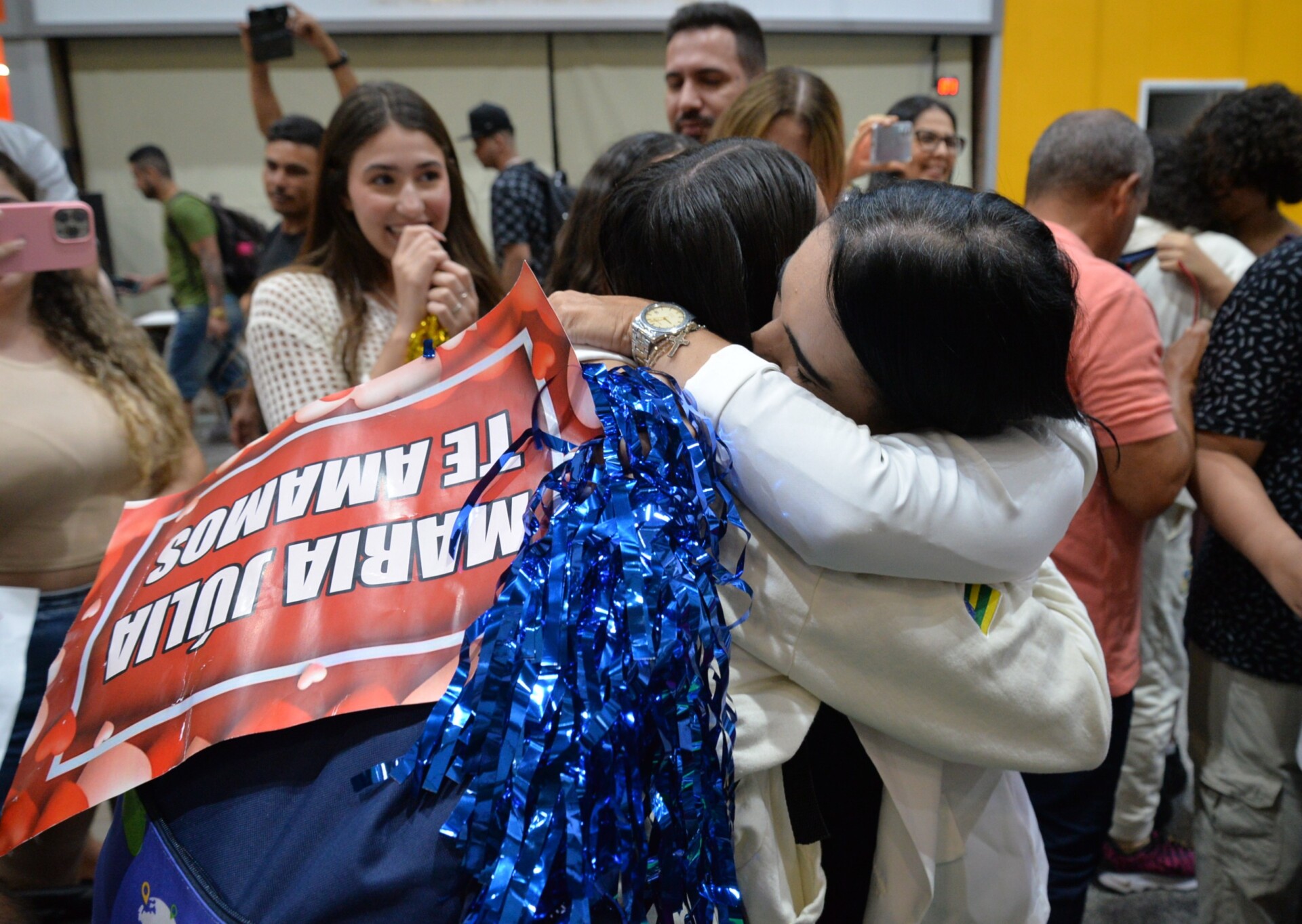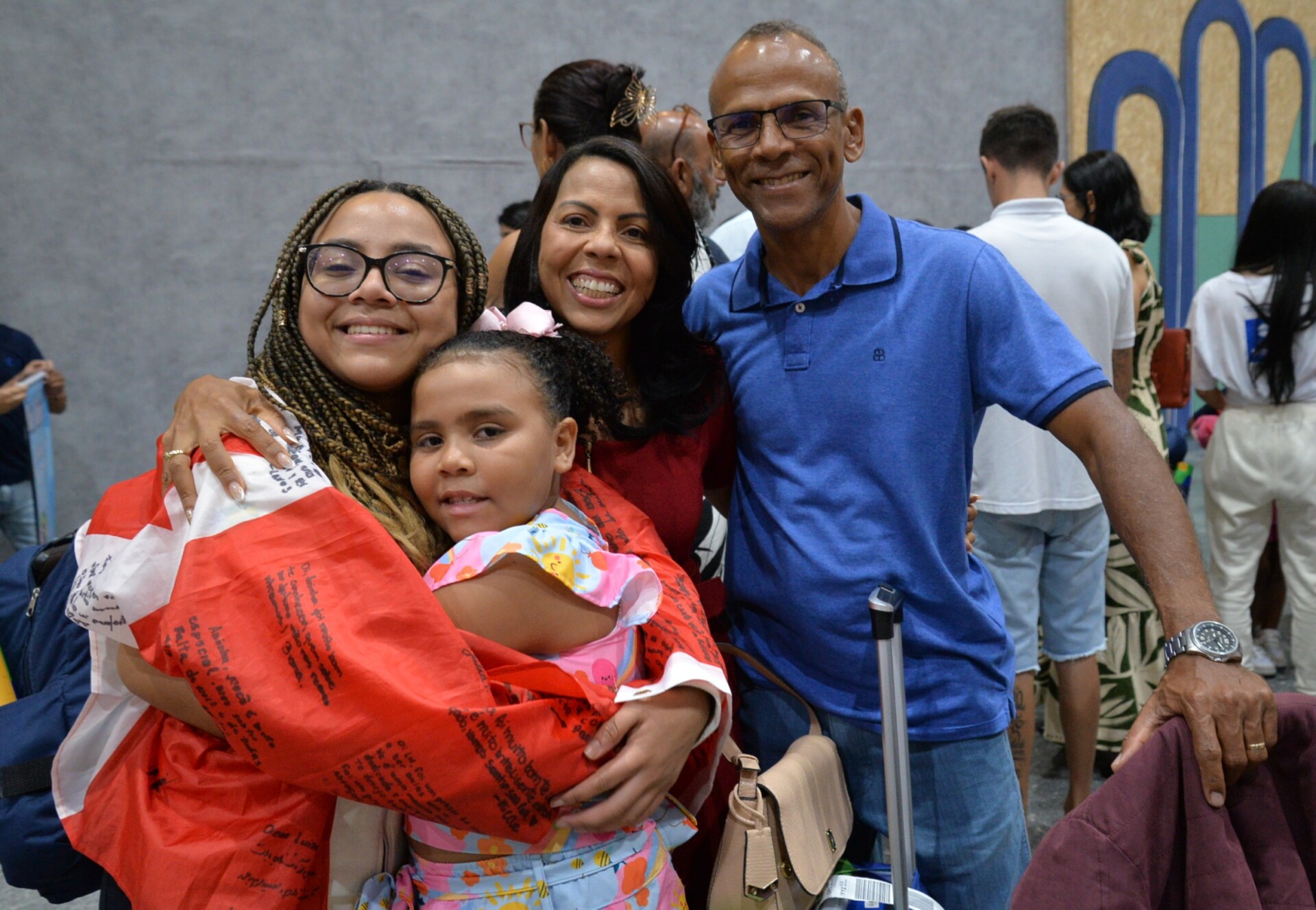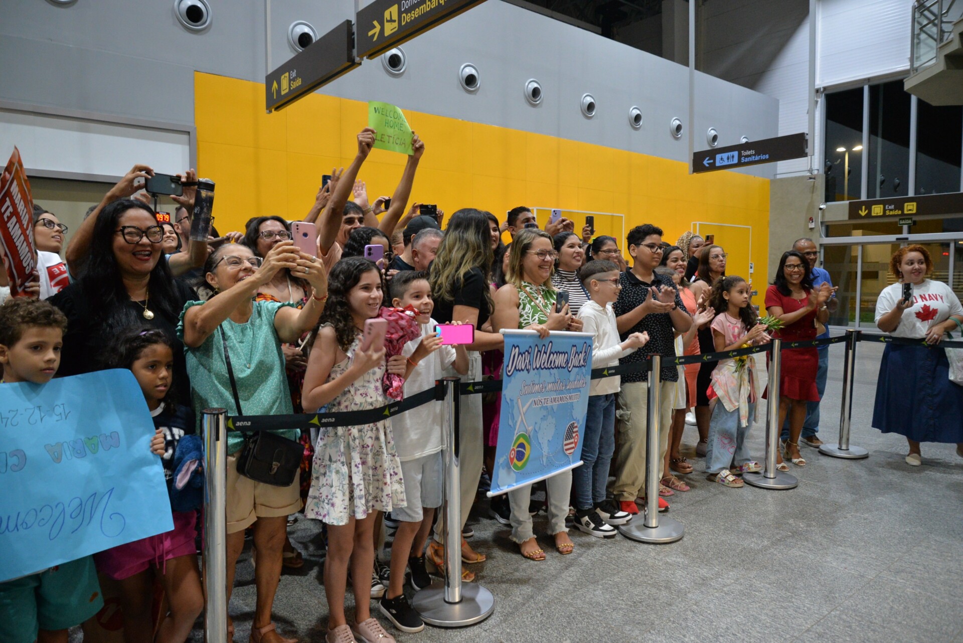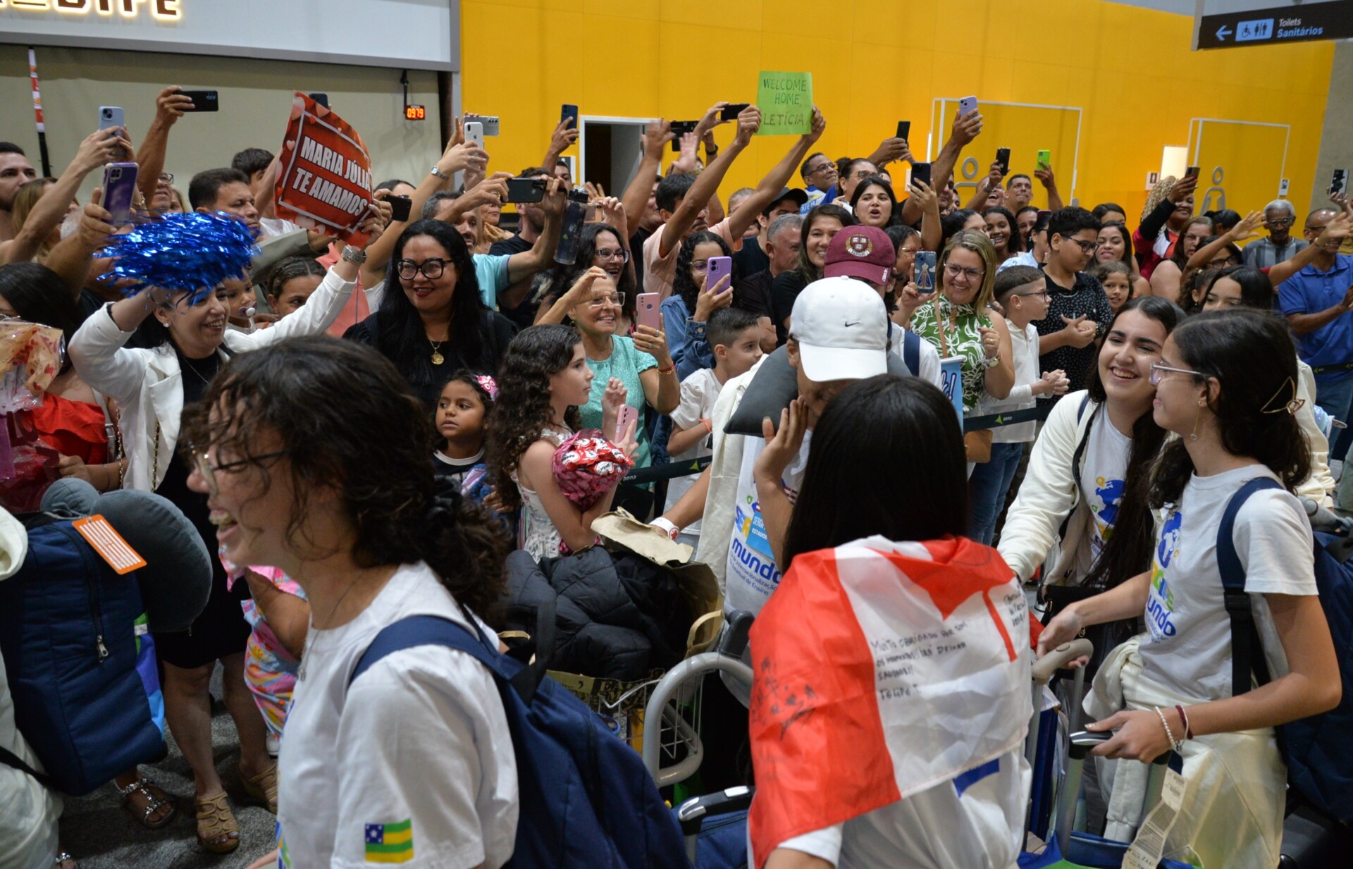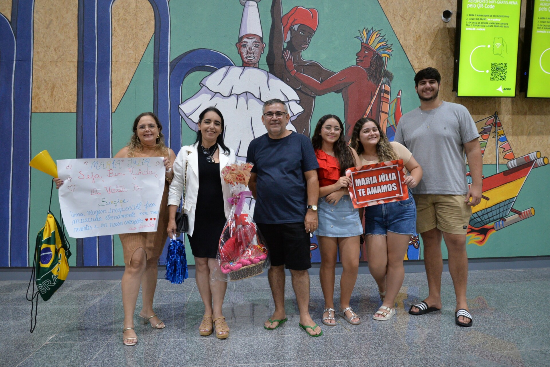 O portão de desembarque ficou pequeno, tamanha a quantidade de amigos e familiares que prestigiaram a chegada histórica da segunda turma do programa de intercâmbio do Governo de Sergipe, destinado aos estudantes da rede pública estadual. Os cartazes, presentes, flores e mimos representaram a saudade e a expectativa da chegada.