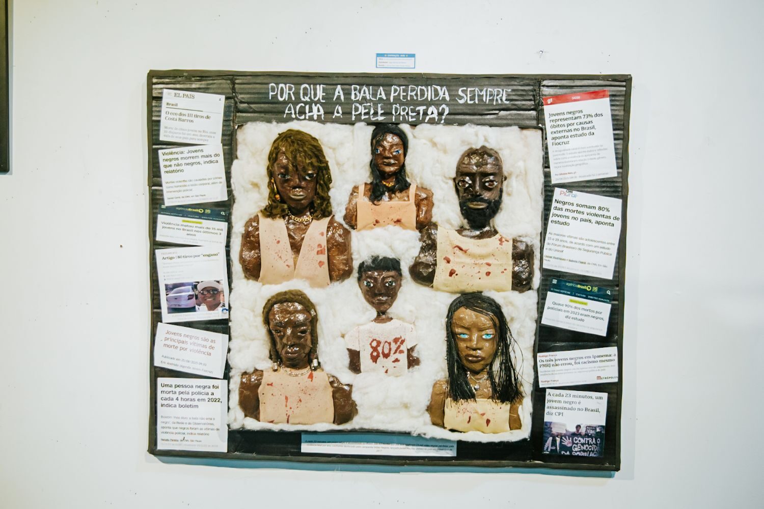 Outra premiada foi Lilian Barreto, que apresentou a obra ‘Porque a Bala Perdida Sempre Acha a Pele Negra’, inspirada nas atividades do Selo Escola Antirracista Professora Maria Beatriz Nascimento. “É o terceiro ano que participo, e sempre fui premiada com minhas obras. Isso me motiva a criar novos conceitos e expressar o que penso e sinto por meio da arte”, contou.