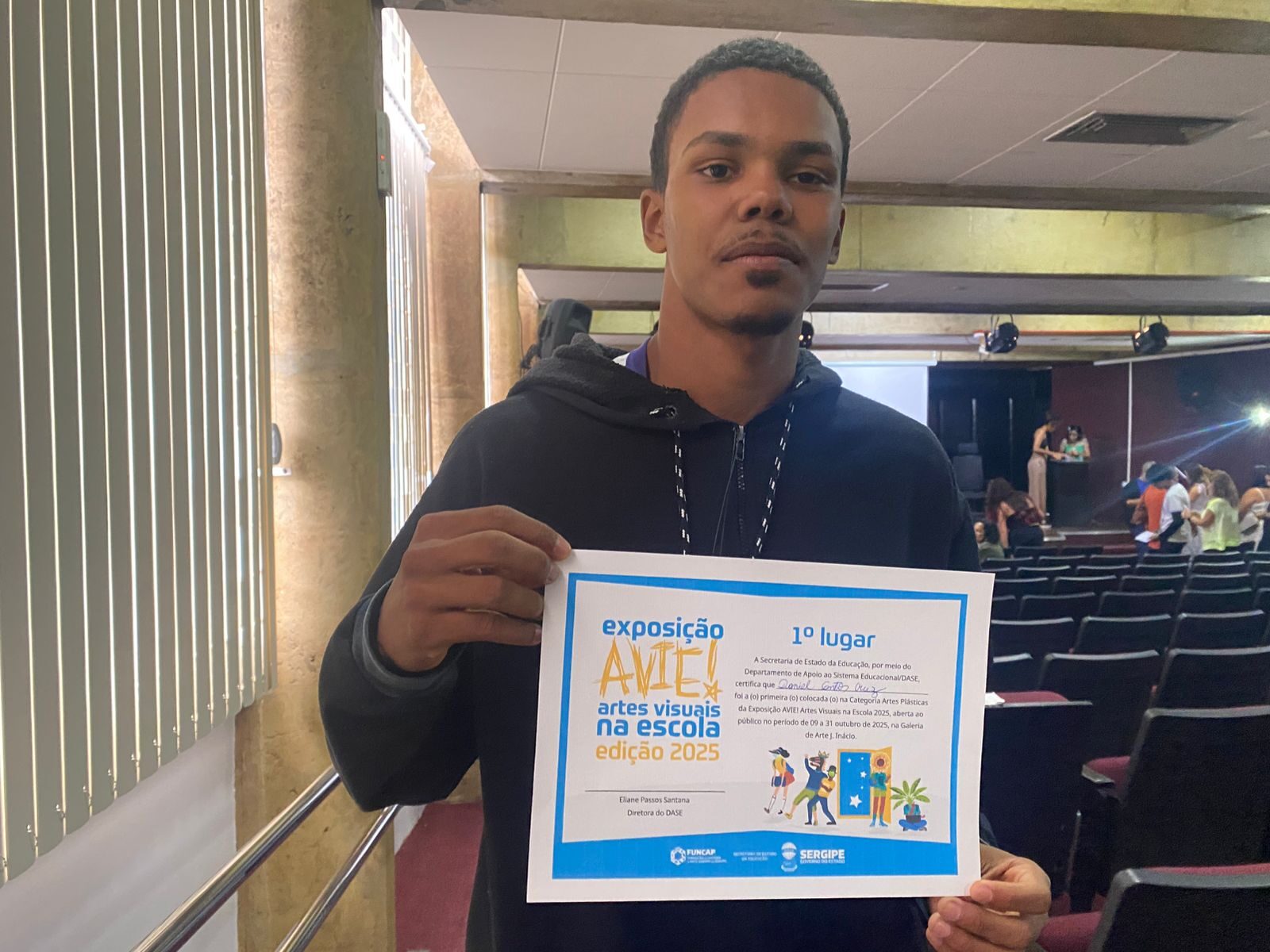 Entre os participantes desta edição, o estudante Daniel Santos Cruz, do Centro de Excelência Felisberllo Freire, em Itaporanga d’Ajuda, conquistou o 1º lugar na categoria de artes plásticas com a obra “O Cortador de Cana”. Inspirado na realidade dos brasileiros que precisam trabalhar precocemente por falta de acesso à educação, Daniel contou que a premiação o surpreendeu. “Quando inscrevi minha obra, não imaginei que ela seria premiada. Estou participando pela primeira vez, e esse reconhecimento me inspira a continuar criando”, disse.