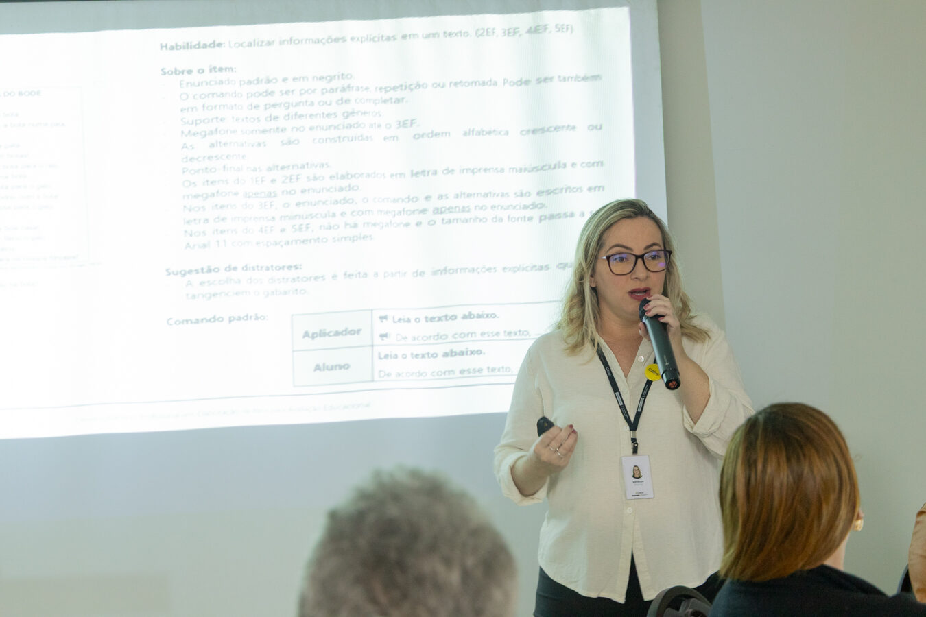 A formação teve duração de 80 horas, 40 das quais deram-se em formato online e 40 horas em formato presencial. Durante a programação, os participantes puderam socializar experiências, revisar conceitos sobre matriz de referência e discutir pontos importantes da elaboração criteriosa de itens, como as ferramentas de diagnóstico para o avanço da aprendizagem.