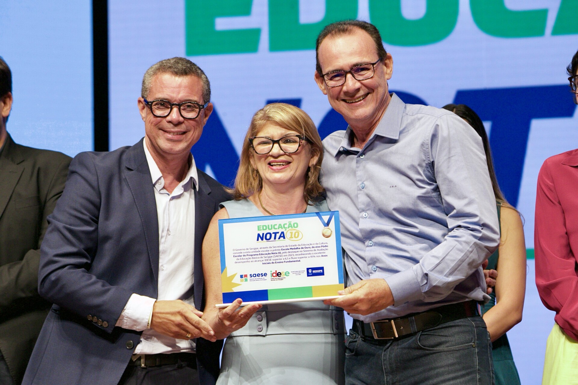 O Governo do Estado, por meio da Secretaria de Estado da Educação e da Cultura (Seduc), realizou nesta terça-feira, 22, a entrega dos Prêmios Educação Nota 10 e Escola Destaque. Em cerimônia realizada no Teatro Tobias Barreto, em Aracaju, com a presença do governador Fábio Mitidieri, foram homenageados 3.500 professores e 5.200 servidores, como reconhecimento pelos esforços de evolução e consolidação dos bons resultados da Educação pública estadual, evidenciados em diversos índices.