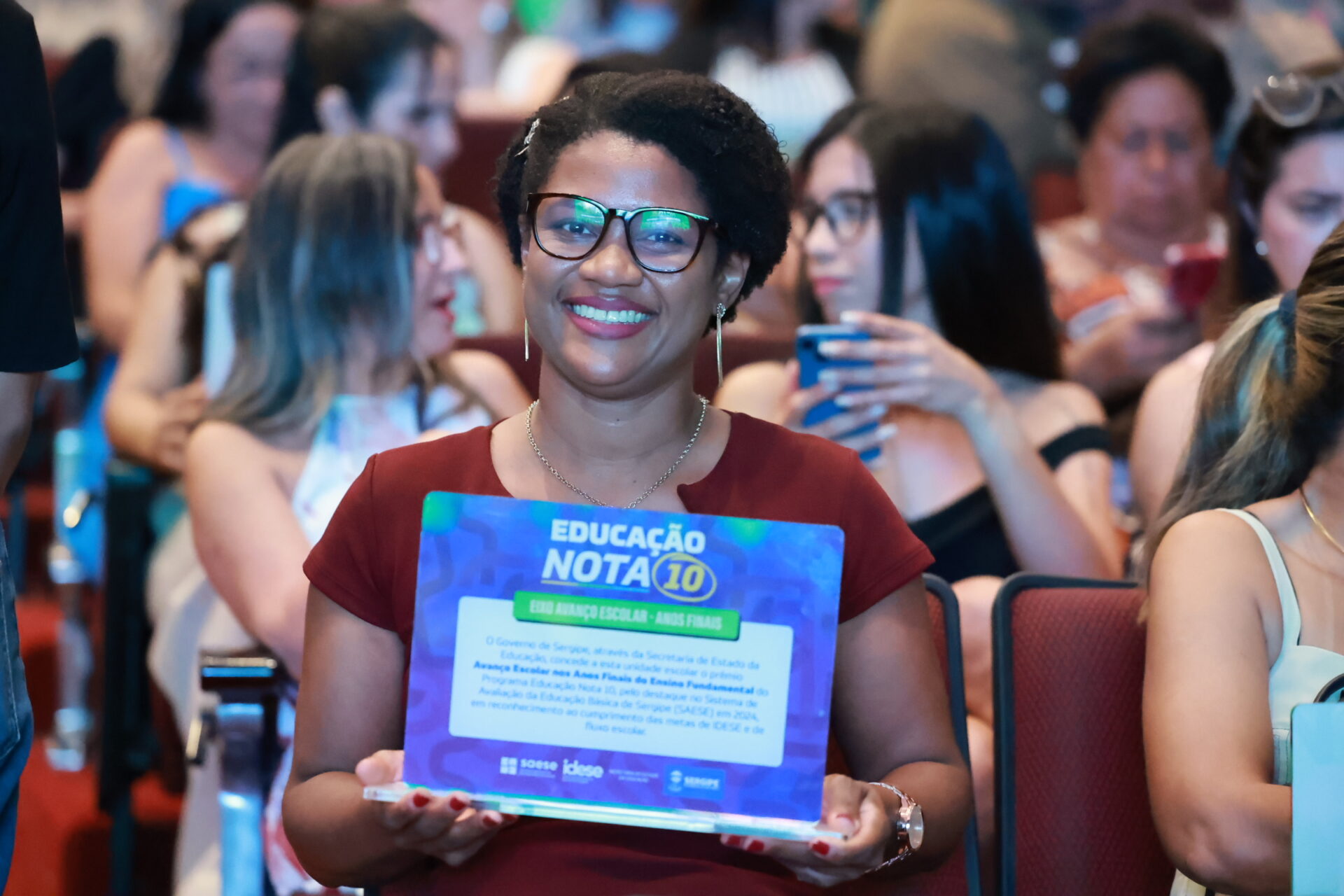 Felizes com o reconhecimento de seus esforços em prol do fortalecimento da educação pública estadual, os gestores das unidades compareceram à solenidade e destacaram a relevância da premiação. Gestora da Escola Estadual Professor Valnir Chagas, em Aracaju, Andreia Abreu lembrou que o esforço foi coletivo. “Estou muito feliz em estar representando toda a equipe Valnir Chagas, porque hoje colhemos o fruto de todo planejamento do ano de 2024 e sempre buscando resultados para o próximo, no caso, 2025”, considerou. A escola que ela dirige recebeu medalha de bronze e teve a maior média nos anos finais, na capital. “O Nota 10 é uma ação muito positiva, que reconhece nossos professores e toda a equipe de servidores da escola”, pontuou.