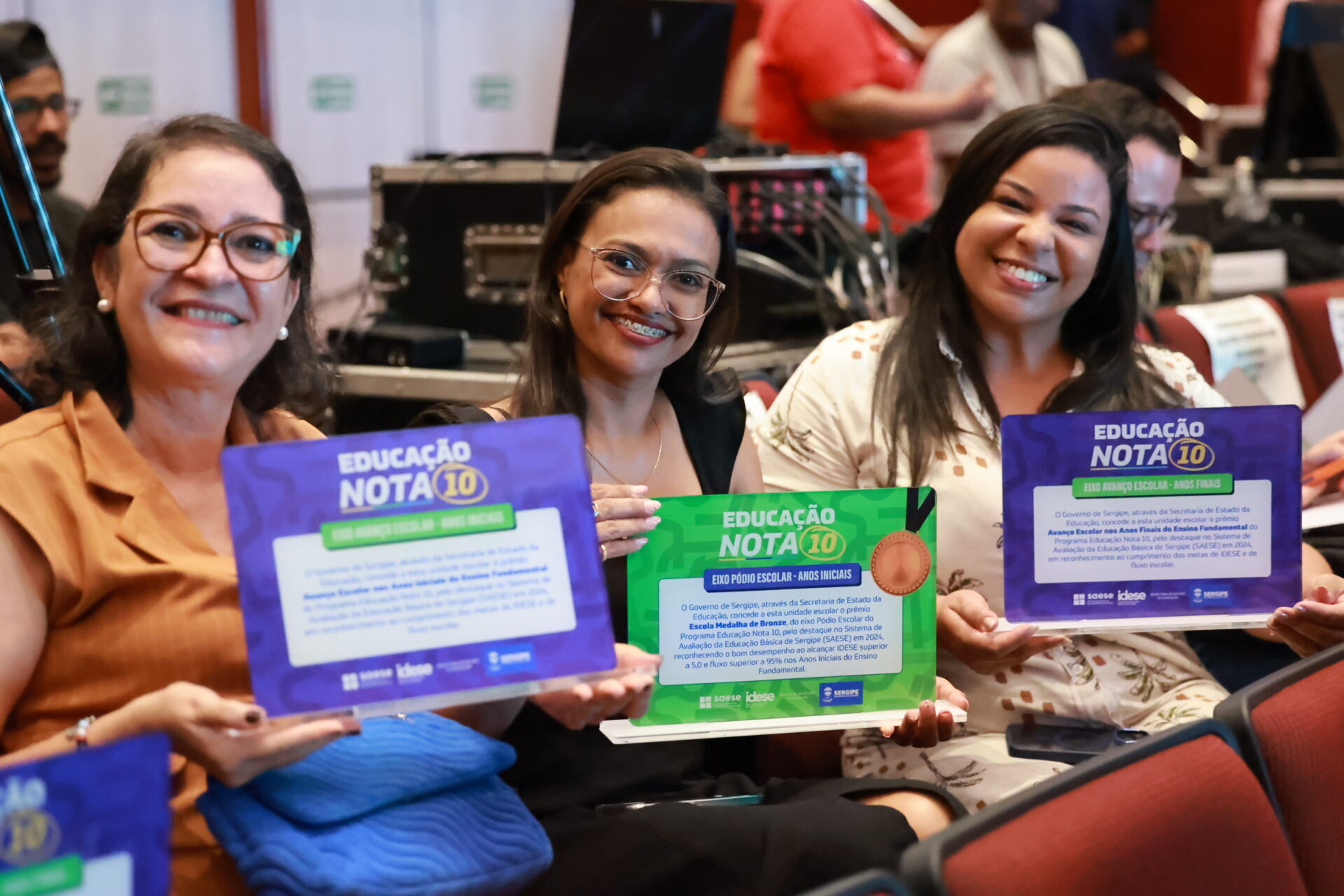 “Pelo terceiro ano consecutivo, premiamos professores e profissionais da educação, como coordenadores, merendeiras, enfim, todos aqueles que trabalham nas nossas escolas e que se destacaram no Ideb e Idese”, disse o governador Fábio Mitidieri, ressaltando que o Estado saiu do investimento, no primeiro ano, de R$ 16 milhões para mais de R$ 31 milhões este ano no Educação Nota 10. “Gestão pública se faz com planejamento e compromisso. Temos destinado o maior orçamento da história para a Educação de Sergipe. Que a grande rede possa estar de mãos dadas, porque somente juntos vamos transformar. Não estamos em lados opostos. Estamos do mesmo lado: o lado da transformação e das oportunidades para os nossos jovens”, completou.