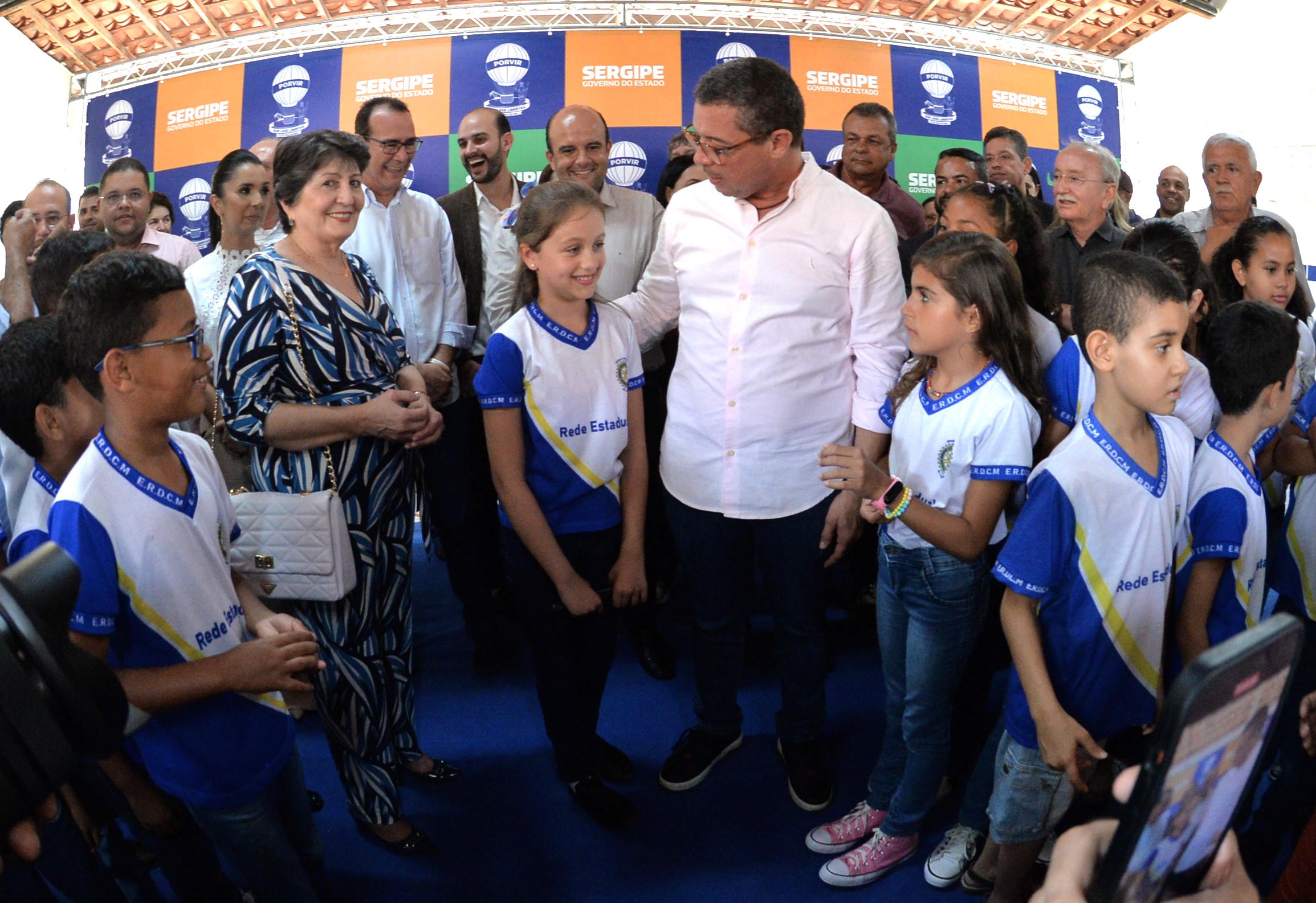 Acompanhou o governador Fábio Mitidieri no descerramento da placa de inauguração o secretário de Estado da Educação e da Cultura, Zezinho Sobral; a diretora da escola, Adriane Vieira; o diretor da Regional de Educação 3, Gladston dos Santos; a representante da família da homenageada, Marta Suzana Oliveira, e o diretor de Engenharia da Seduc, Valdir Pinto.