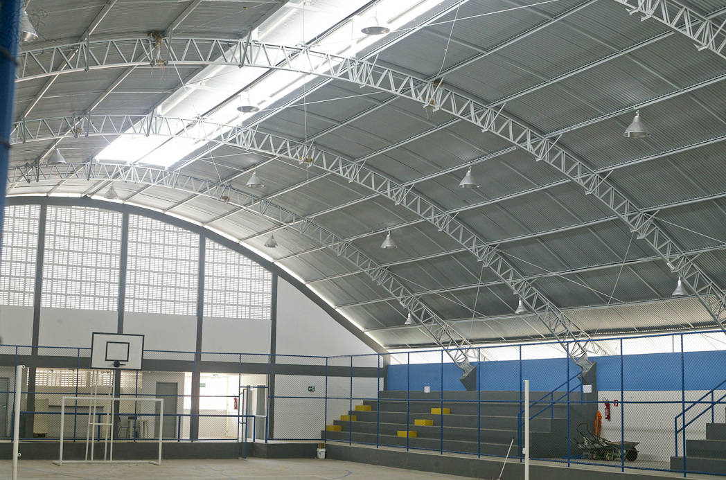 Com capacidade para 200 pessoas, e área total de 2.300,00m², o ginásio possui equipamentos de esporte: um conjunto para futsal, um conjunto para vôlei e um conjunto para basquete. O espaço tem arquibancada, área de jogos, vestiário masculino e feminino e banheiro para pessoas com dificuldade de locomoção. A estrutura tem revestimento cerâmico, pavimentação em alta resistência, piso em concreto, grama e paisagismo, cobertura em telha de alumínio.