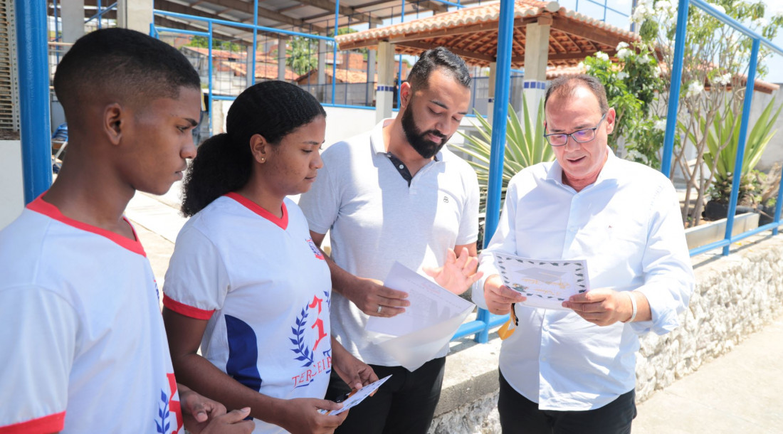 Um grupo de alunos aproveitou a oportunidade para entregar ao secretário Zezinho Sobral o convite da formatura das terceiras séries do Ensino Médio, incluindo a Educação de Jovens e Adultos e o Programa Estadual Sergipe na Idade Certa (ProSIC), prevista para acontecer no dia 26 de janeiro, às 19 horas, já na nova quadra de esportes.