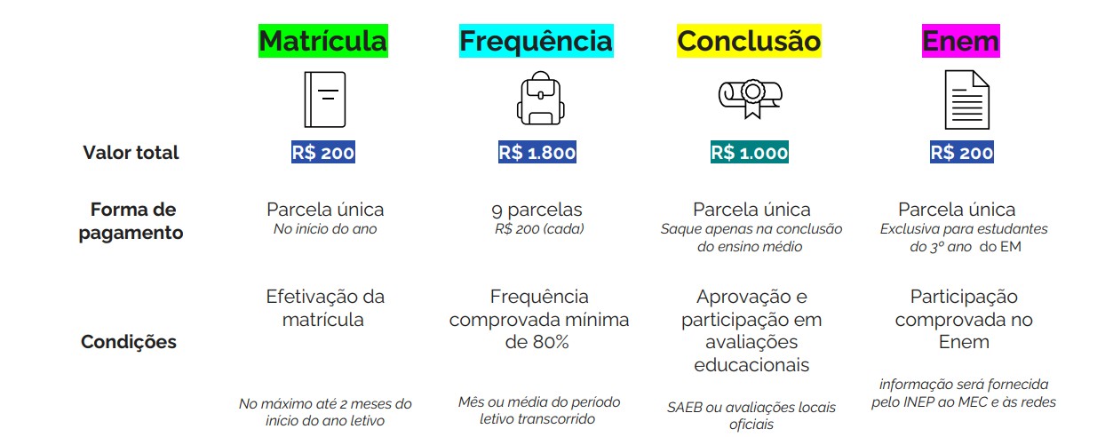 - Quando o estudante tem direito a receber o incentivo a Caixa Econômica Federal abre uma conta, automaticamente.