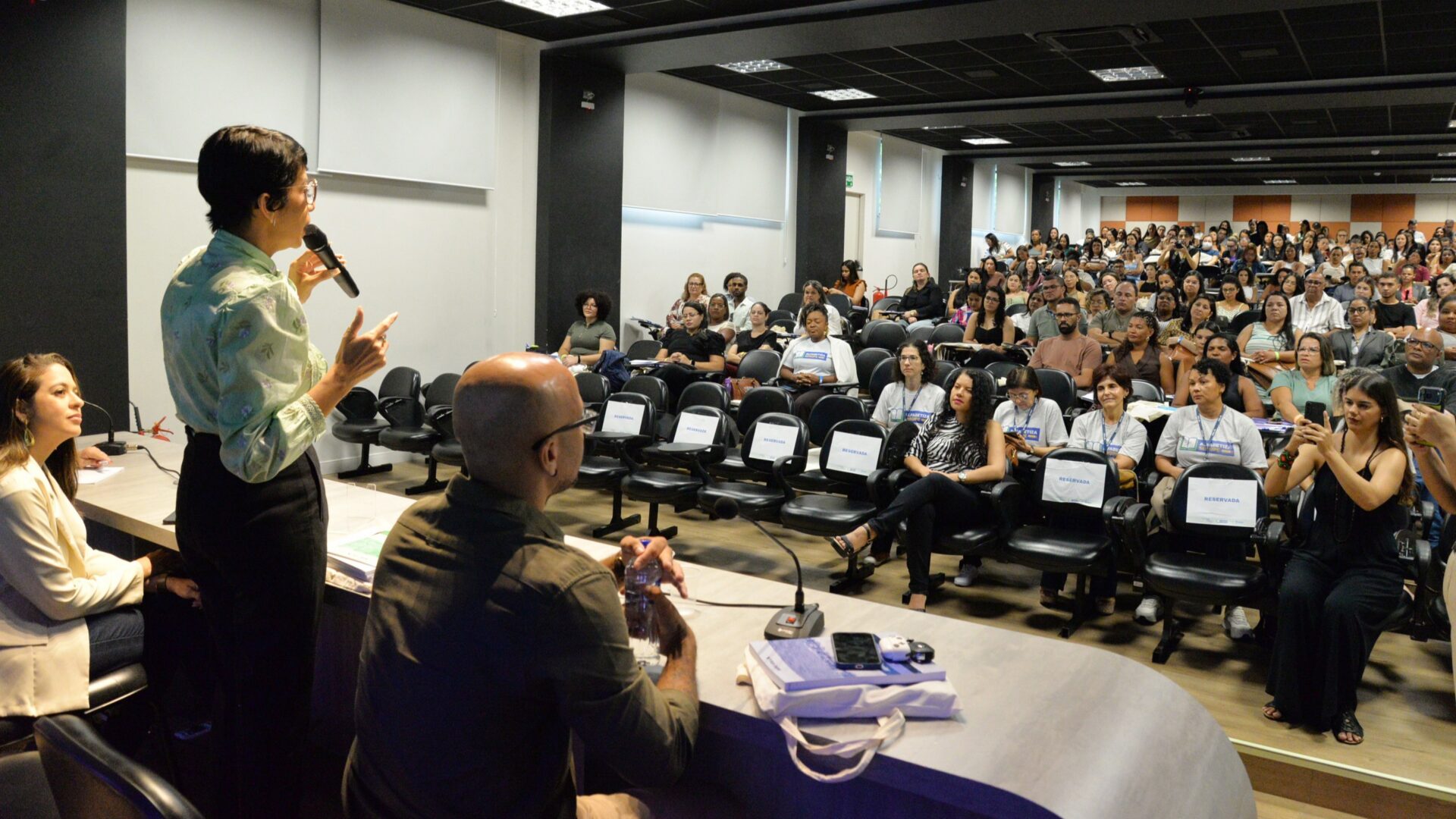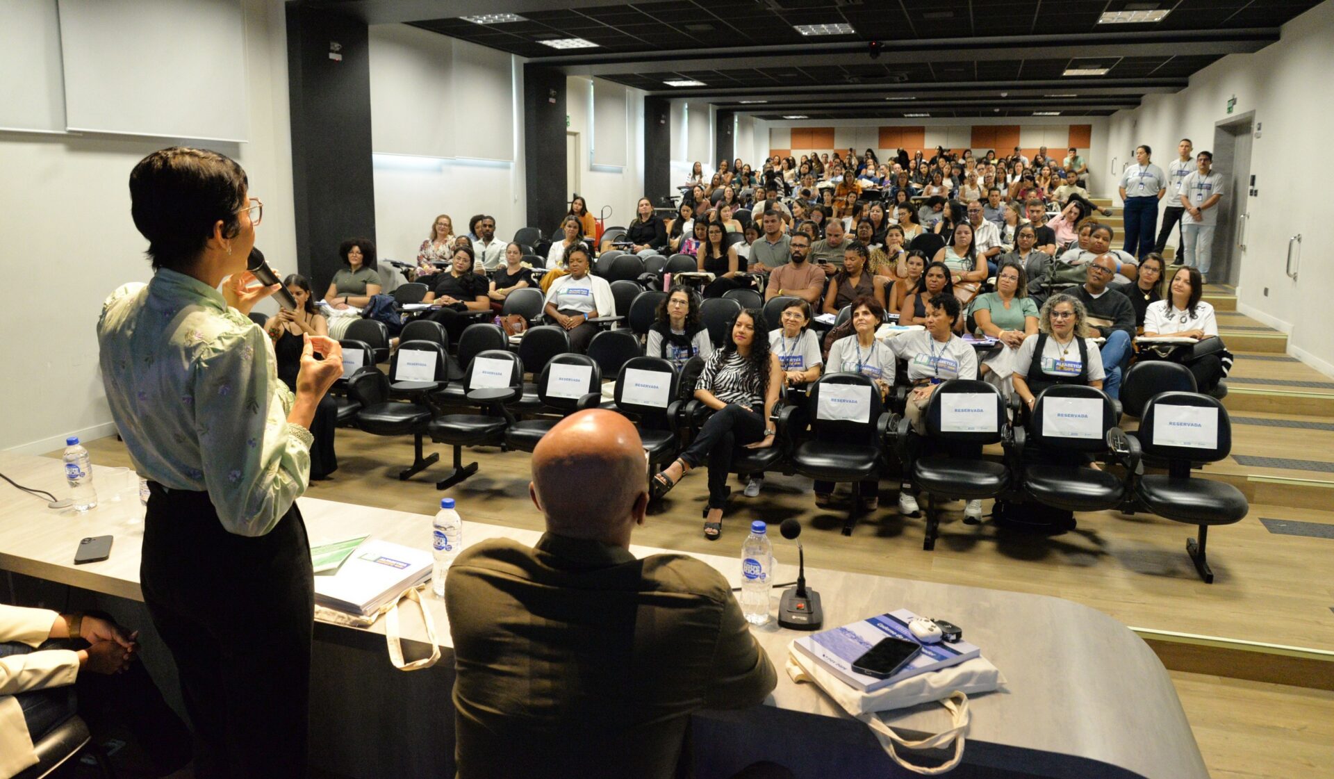 A formação reúne um público diversificado, composto por aproximadamente 140 alfabetizadores, 16 coordenadores de turmas e de polo, além da equipe pedagógica da FGV e técnicos e gestores da Seed. A participação desses diferentes atores reforça o caráter colaborativo da iniciativa, ao integrar profissionais que atuam diretamente na execução e no acompanhamento das ações do programa em todo o estado.