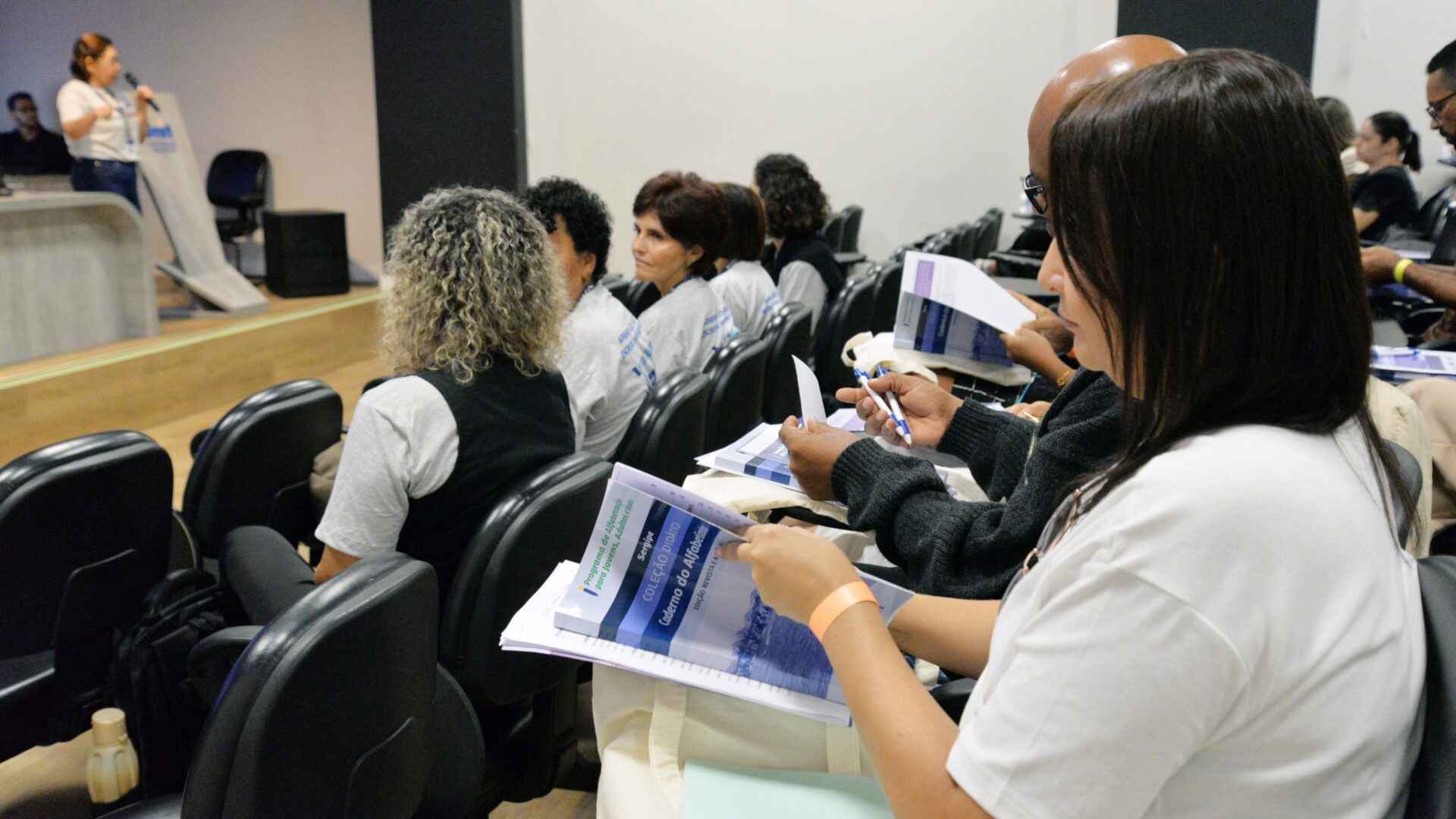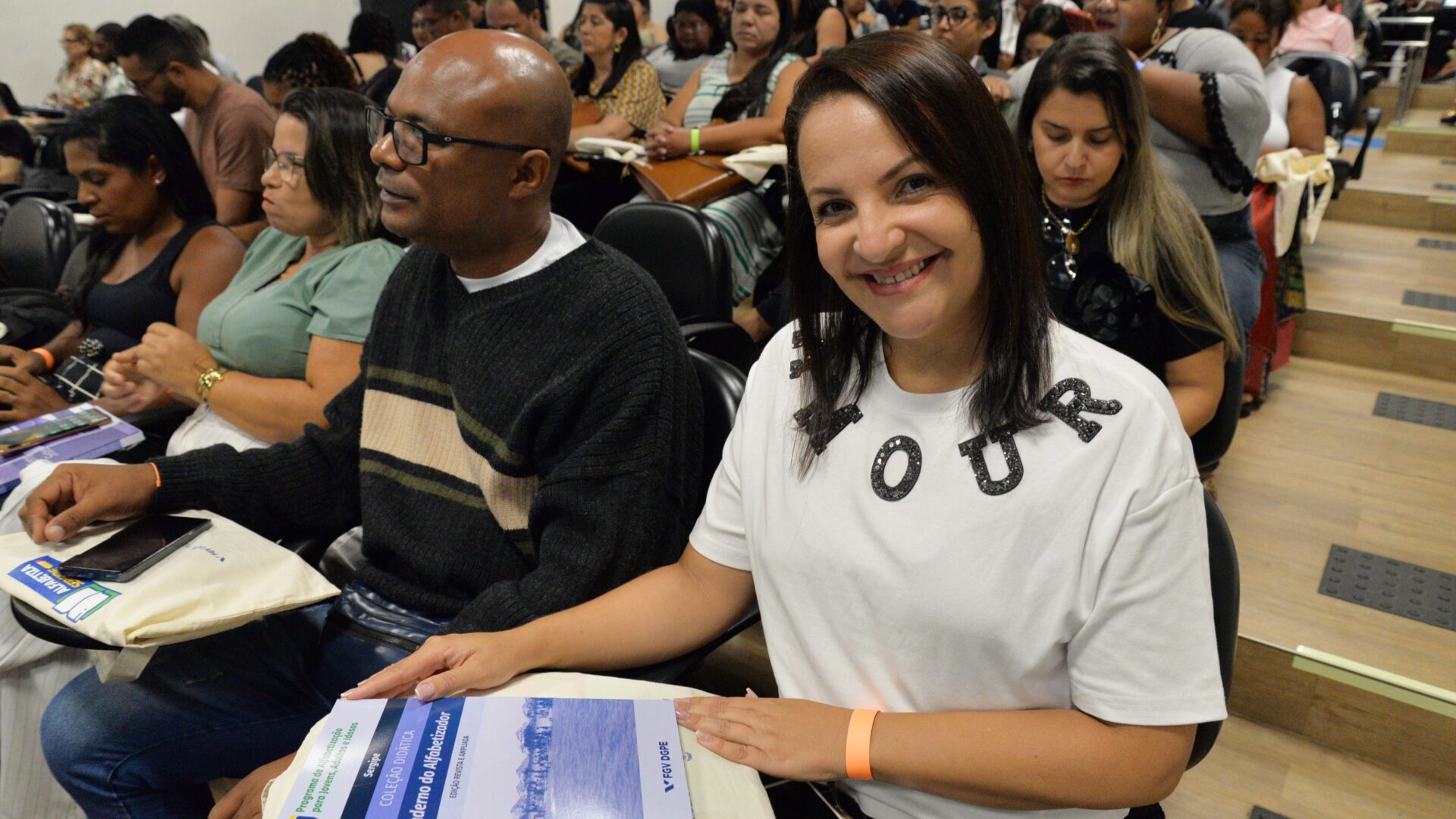 “Estamos aqui hoje no início de mais uma formação com foco na alfabetização de jovens e adultos. Vamos dar início à formação com alfabetizadores que estarão em vários municípios sergipanos cuidando dessa pauta que é muito importante para acabar com o analfabetismo em Sergipe. E, para isso, a gente precisa de ações estratégicas, formações pontuais voltadas para a andragogia, para que aqueles adultos e idosos sejam contemplados nos vários formatos e estratégias que esses alfabetizadores estarão fazendo, compreendendo o percurso de vida de cada um e aproveitando isso em seu processo de aprendizagem”, expressa a secretária de Estado da Educação, Gilvânia Guimarães, sobre a importância de fortalecer a política que propõe a alfabetização tardia.