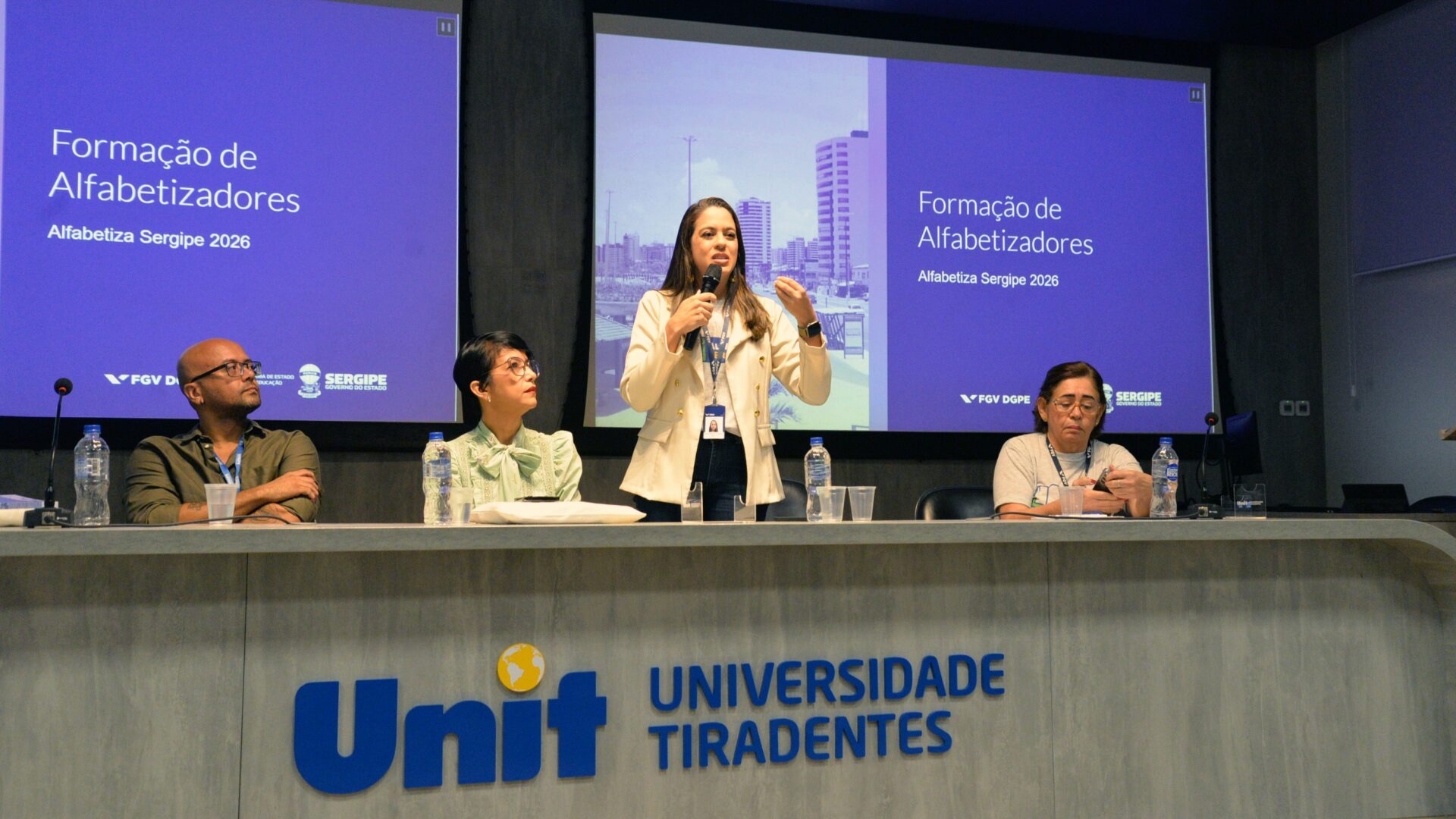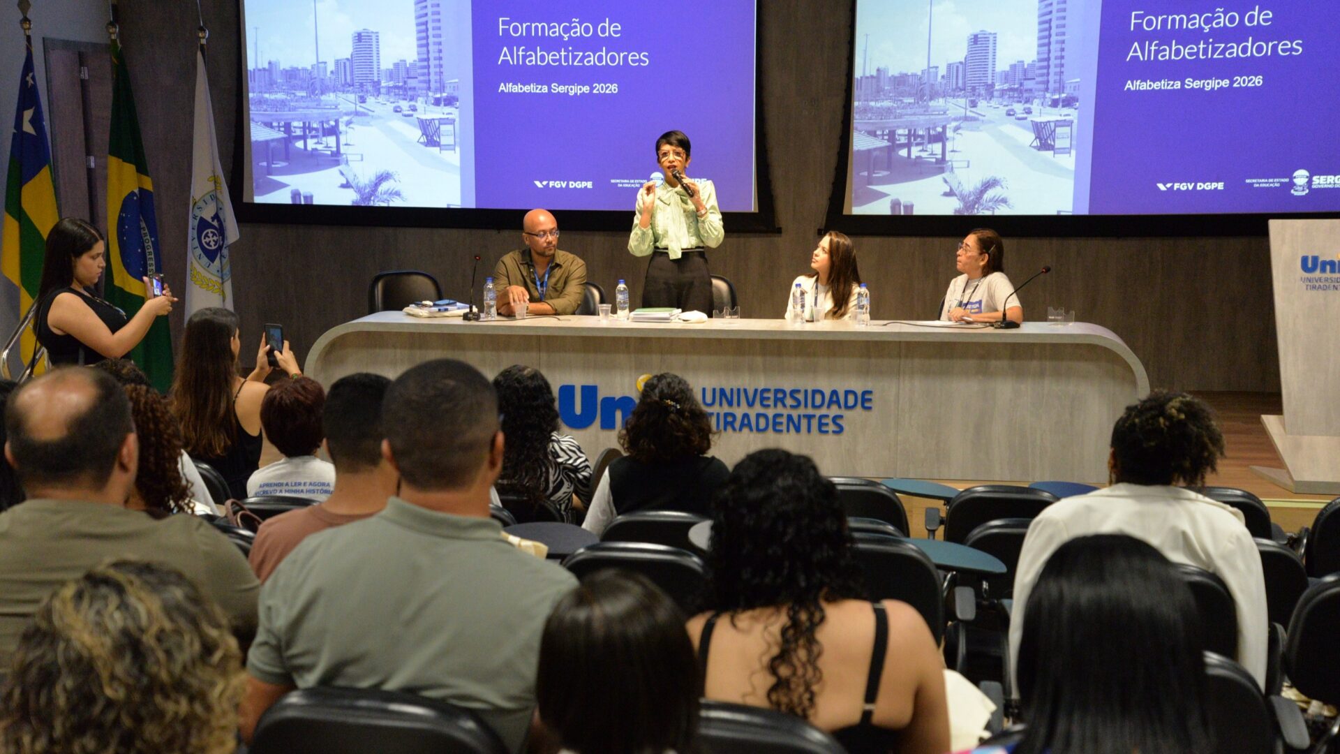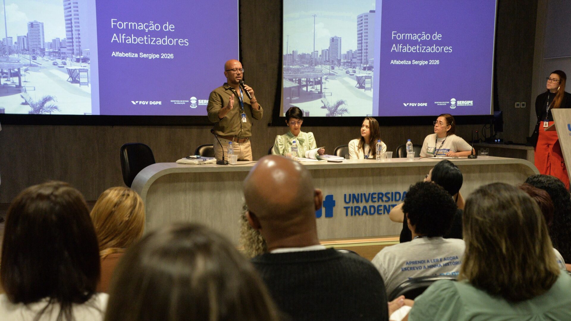 O Governo de Sergipe, por meio da Secretaria de Estado da Educação (Seed), e em parceria com a Diretoria de Desenvolvimento da Gestão Pública e Políticas Educacionais da Fundação Getúlio Vargas (DGPE/FGV), deu início, nesta quarta-feira, 22, à Formação do Programa Alfabetiza Sergipe 2026, realizada no auditório da Universidade Tiradentes, em Aracaju. Com o principal objetivo de fortalecer a atuação dos alfabetizadores e coordenadores do programa, a ação é organizada em torno dos principais eixos do Alfabetiza Sergipe e ocorrerá até a sexta-feira, 24.