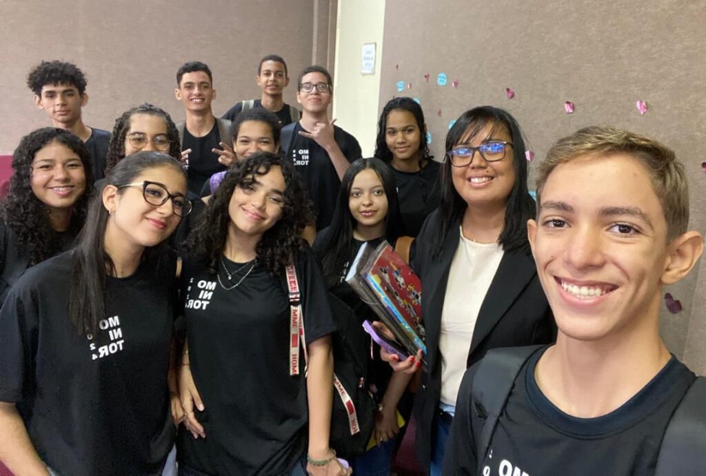 “É meu primeiro ano estudando em um colégio público, e eu nunca tinha visto esse tipo de programa de monitoria. Está sendo muito acolhedor. É muito bom poder ajudar as pessoas que precisam e que têm dificuldade na matéria, poder servir como um auxílio para a coordenação, para a diretoria, trazer ideias para a escola e, com isso, promover melhorias”, diz Emilly Silveira, estudante da 2ª série e monitora de Desempenho Escolar e Busca Ativa.