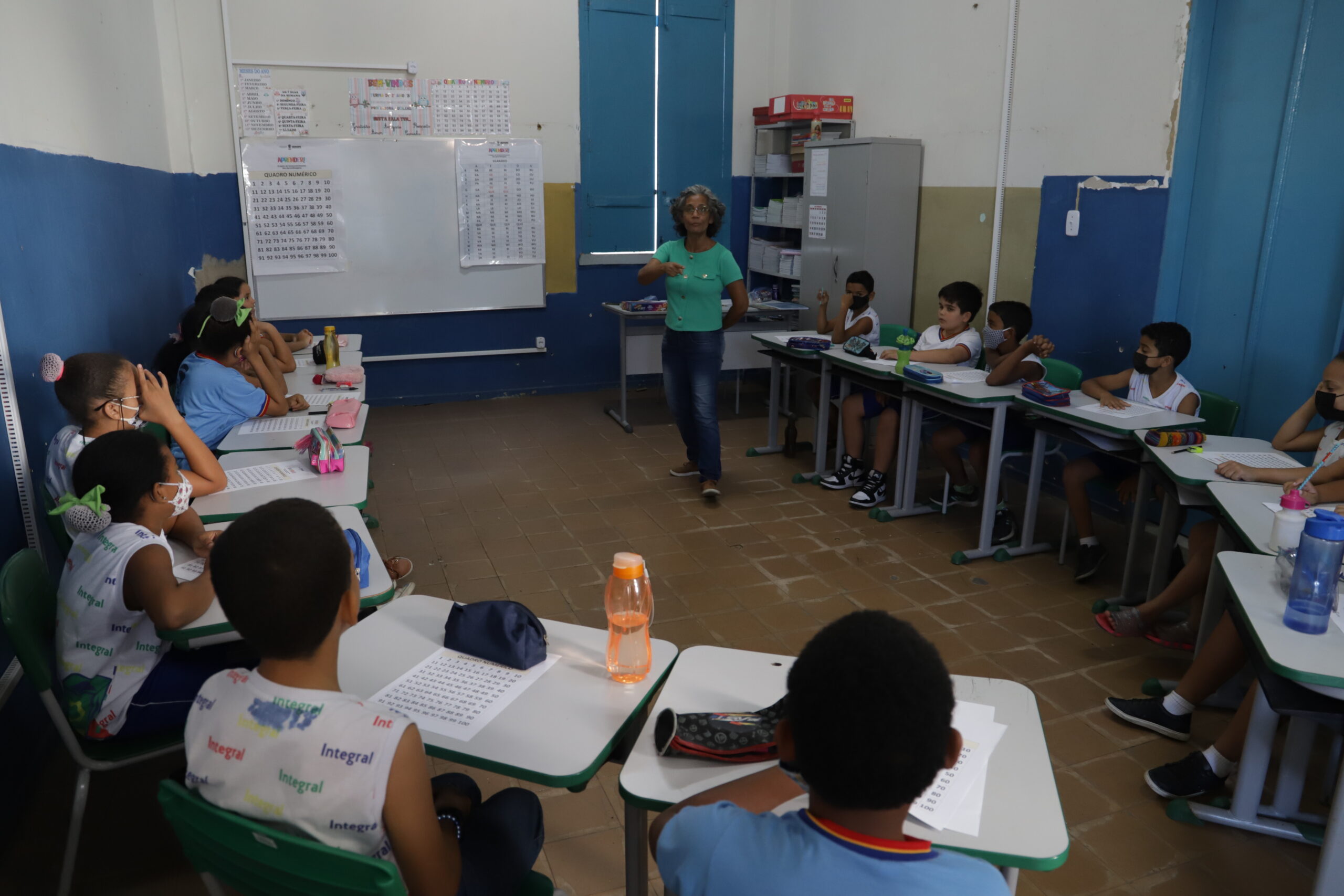 A iniciativa constitui-se a partir da montagem de turmas de 20 estudantes com foco na superação das perdas de aprendizagens ocorridas ao longo dos últimos dois anos e das defasagens de aprendizagens já existentes antes da pandemia, a fim de assegurar a progressão do desenvolvimento das habilidades, competências cognitivas e socioemocionais dos estudantes. As técnicas do Núcleo de Acompanhamento Pedagógico da Seduc Cássia Fernanda e Renata Guimarães, bem como a formadora da instituição parceira Elos Educacional, Selma Gomes, estiveram na unidade a fim de assistir à primeira aula ministrada pela professora Lucilene Fábia Rocha em torno do projeto.