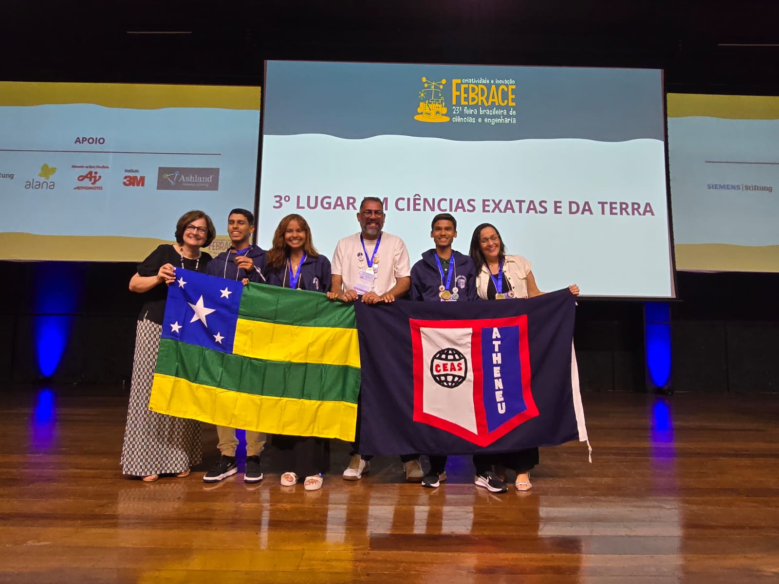 O projeto ‘Desenvolvendo esponjas biodegradáveis utilizando a fibra do coco: uma alternativa sustentável às esponjas de plástico’, protagonizado pelos alunos do Centro de Excelência Atheneu Sergipense, Caio Matheus Lobo Dias, Gabriel de Oliveira Santos e Jessy da Silva Santos, orientados pela professora Cristiane Campos Lemos Moreira (Química) e pelo professor Everton Ricardo (Física), ficou em terceiro lugar geral na categoria ‘Ciências Exatas e da Terra’.