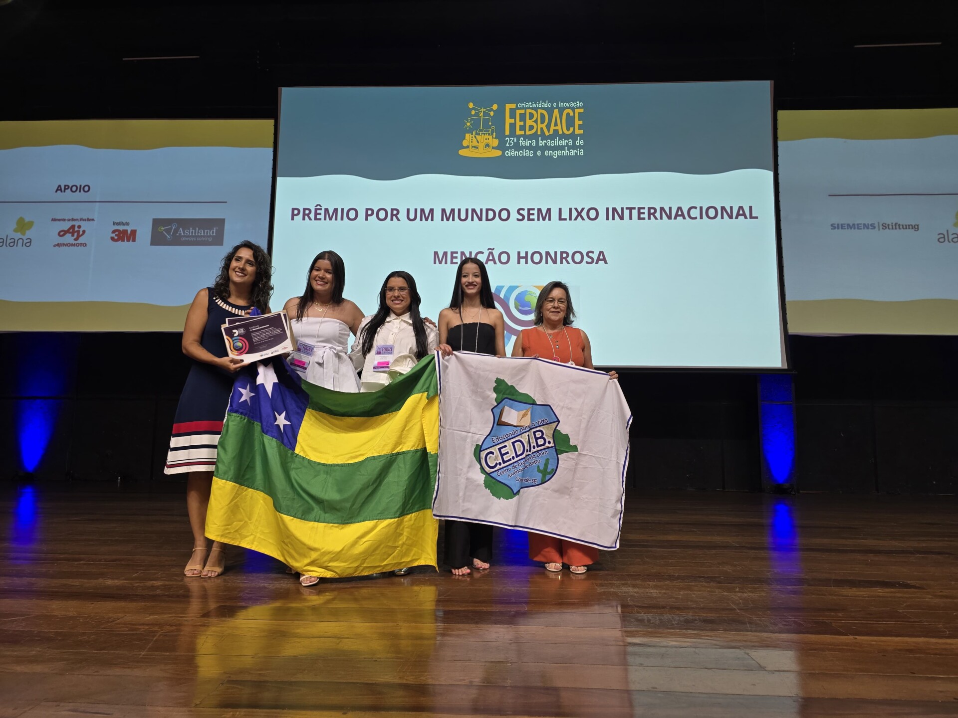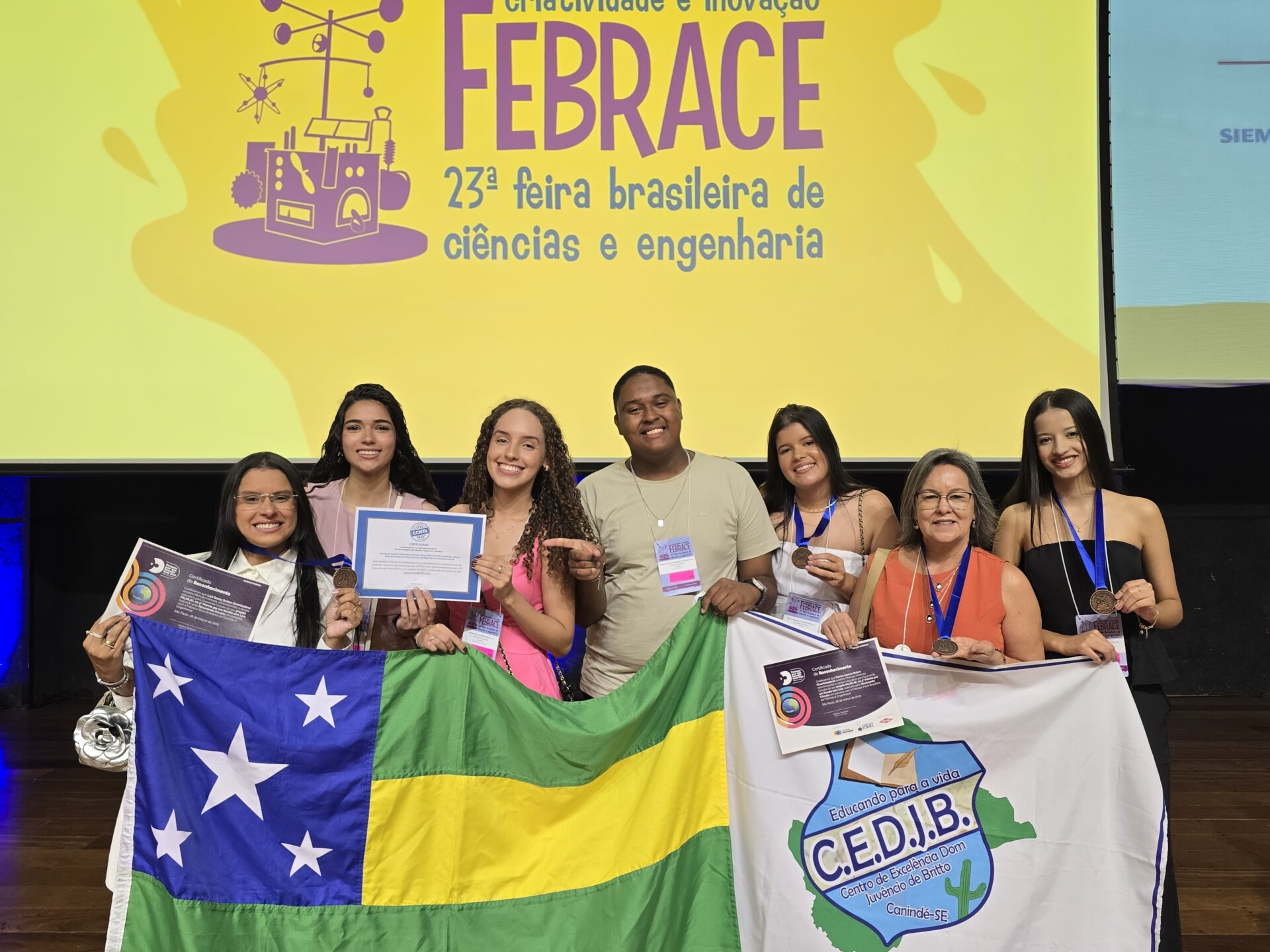 Três projetos dos centros de excelência Dom Juvêncio de Britto (Canindé de São Francisco), Atheneu Sergipense (Aracaju) e Centro Estadual de Educação Profissional Dom José B. de Castro (Poço Redondo) foram premiados e receberam reconhecimento público durante a solenidade de encerramento da 23ª edição da Feira Brasileira de Ciências e Tecnologia (Febrace), realizada nesta sexta-feira, 28, no Centro de Difusão Internacional da Universidade de São Paulo (USP).