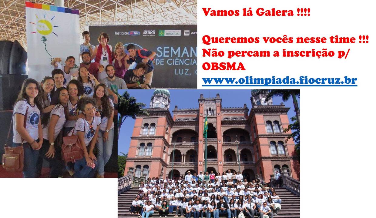 Os professores agora têm até o dia 15 de agosto, às 17h, horário de Brasília, para inscreverem os trabalhos de seus alunos no site da Olimpíada (http://www.obsma.fiocruz.br/).
