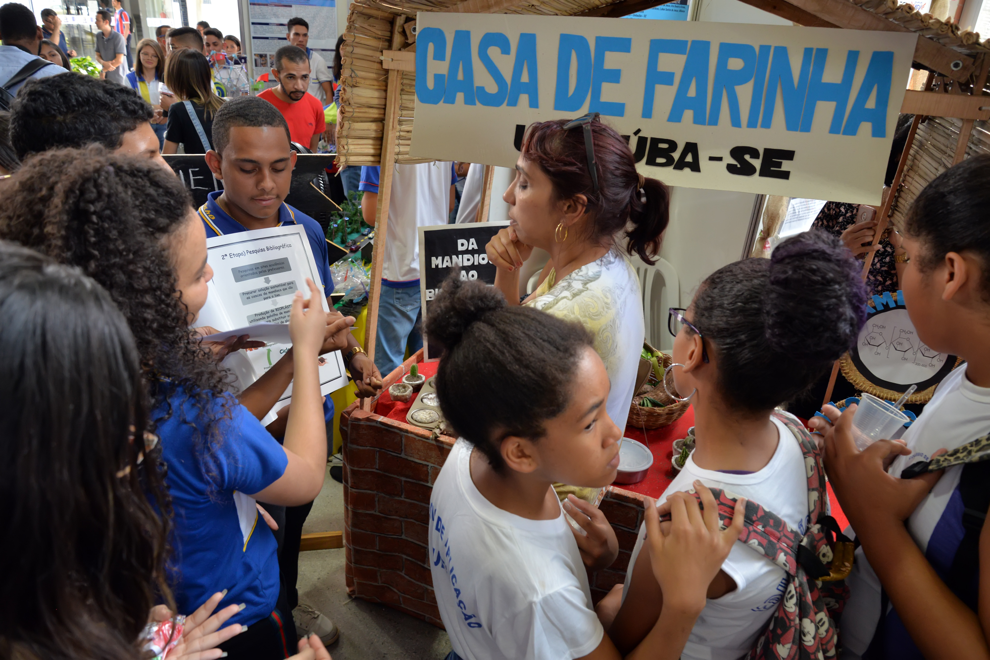 Em segundo lugar na categoria Ensino Médio ficou o Colégio Estadual Dr. Antônio Garcia Filho, localizado em Umbaúba. Com a orientação da professora de Química, Darcylaine Vieira Martins, o grupo apresentou o trabalho intitulado “Casa de farinha: a contextualização do ensino de química a partir da produção de mandioca em Umbaúba”. O projeto buscou resgatar conceitos químicos presentes na produção da farinha de mandioca, tanto para exemplificar conteúdos de Química Orgânica e Ambiental, como para observar a comunidade onde os alunos vivem, tornando os conteúdos didáticos mais compreensíveis e motivadores. Foram realizadas visitas às casas de farinha pelo município para pesquisas de campo, onde os alunos perceberam a problemática no acúmulo das cascas da mandioca, seguidas de pesquisas bibliográficas em sites da internet e, por último, a experimentação para transformar as cascas do tubérculo em embalagens sustentáveis.