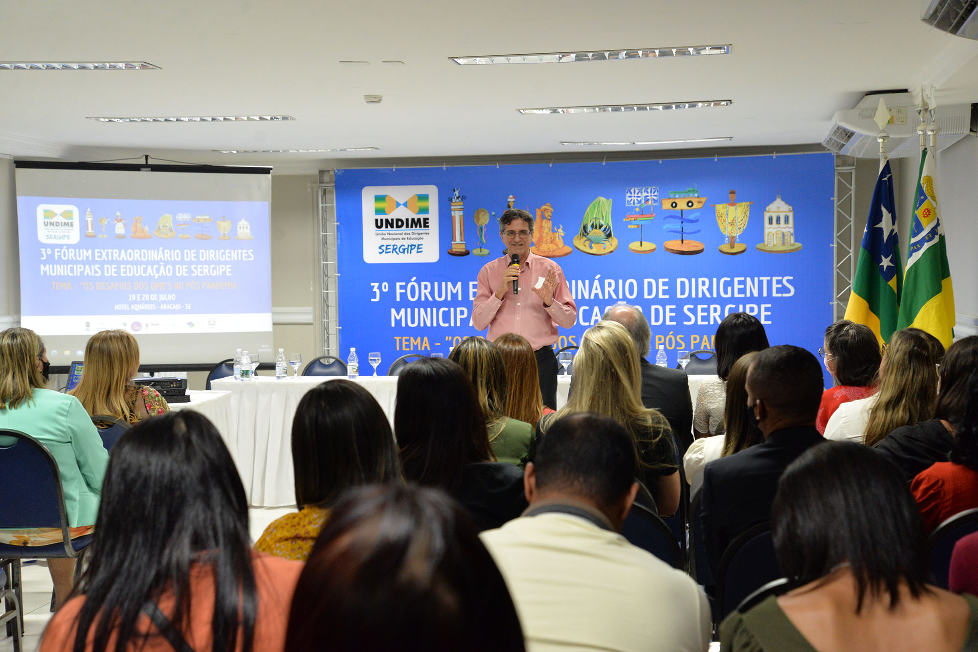 Convidado a palestrar, o secretário Josué Modesto falou sobre o tema ´Os Desafios dos Dirigentes Municipais de Educação no Pós-pandemia´. “Nós estamos discutindo a volta às aulas, as circunstâncias de funcionamento das nossas escolas, especialmente as municipais, neste contexto de pós-pandemia e suas sequelas. Vamos falar também sobre o novo padrão de financiamento da educação, com o Novo Fundeb e o novo ICMS Social, e como que as redes municipais se organizam para atender a esses desafios. Estamos preocupados com a melhoria da educação pública e, em Sergipe, estamos em pleno funcionamento do regime de colaboração do Estado com os municípios”, explicou.