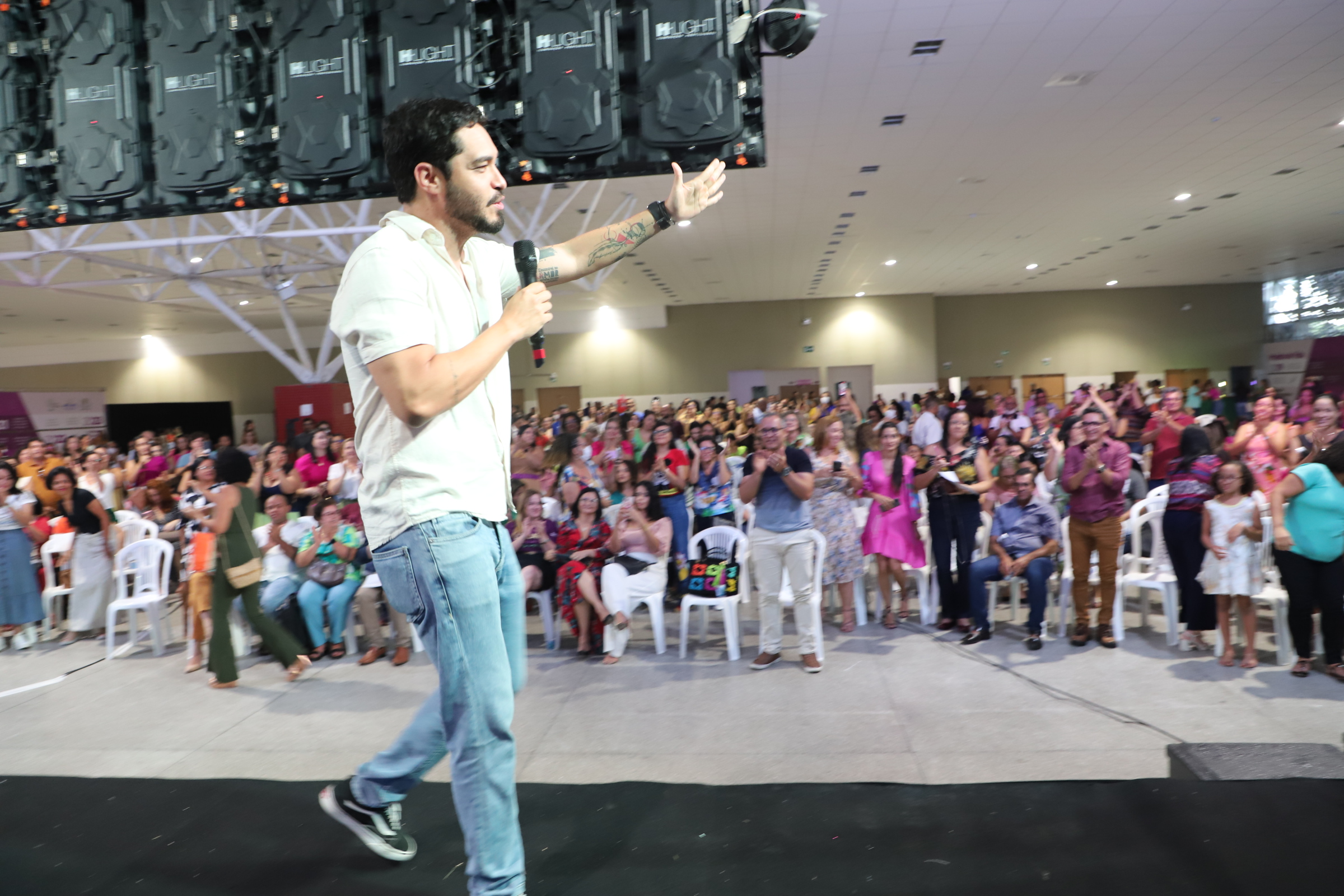 O workshop finalizou com um convidado especial do Sebrae, o comediante Diogo Almeida, que fez apresentação artística e o show de stand-up “Vida de professor”.