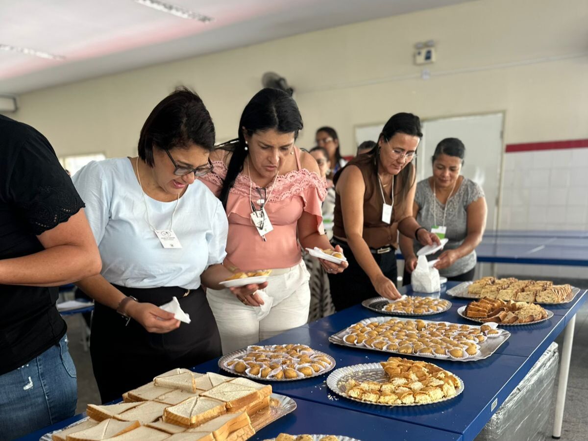 No turno da tarde, às 13h30, houve a oficina culinária, quando as equipes colocaram em prática as preparações sorteadas, aplicando as orientações das fichas técnicas até as 16h. Em seguida, das 16h às 16h30, os grupos apresentaram os resultados obtidos durante as atividades práticas, compartilhando experiências e aprendizados. Finalizando o evento, entre 16h30 e 17h, houve um momento de esclarecimento de dúvidas e alinhamentos finais, encerrando a formação com uma síntese geral das atividades do dia.