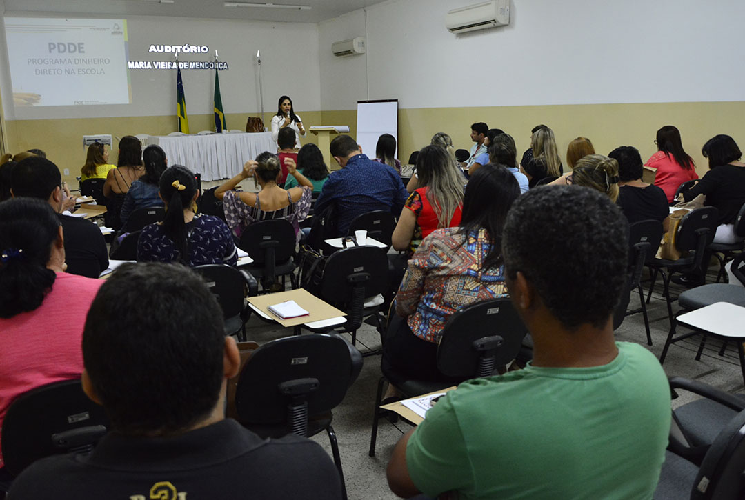 Incialmente os diretores foram orientados sobre os tipos de PDDE, a exemplo do Básico; Estrutura (Acessibilidade, Campo e Escola); Qualidade (Ensino Médio Inovador, Atleta e Mais Cultura) e o Mais Educação.