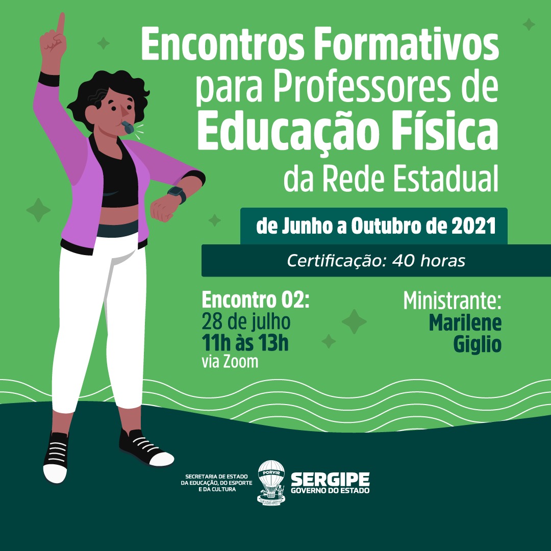 A Secretaria de Estado da Educação, do Esporte e da Cultura (Seduc) realizará no próximo dia 28, às 11h, por meio da plataforma Zoom, o segundo encontro do ciclo de formação direcionado aos professores de Educação Física da Rede Pública Estadual. O encontro abordará o tema "Projetos de Área e seus impactos no aprendizado dos estudantes" a luz do Currículo de Sergipe.