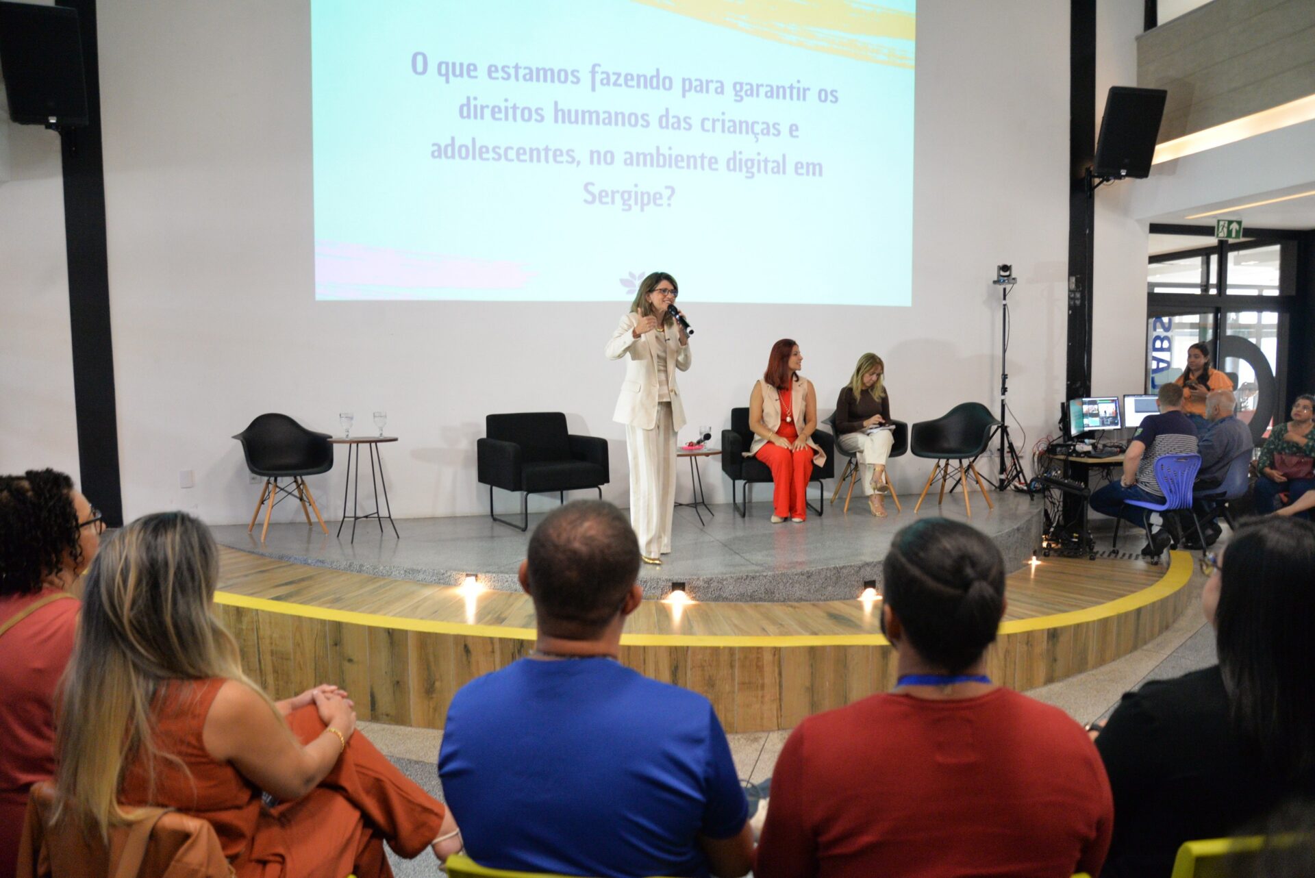 Na abertura, a secretária de Estado da Educação, Gilvânia Guimarães, destacou que o encontro marca o início de um processo contínuo de formação e diálogo. “O Estatuto da Criança e do Adolescente nasce em um contexto analógico, e hoje vivemos uma realidade digital que exige novas compreensões. Precisamos entender que, tanto no mundo real quanto no virtual, existem leis. Nosso papel é orientar, proteger e combater qualquer forma de crime, sobretudo diante das vulnerabilidades de nossas infâncias e juventudes. É uma primeira prosa. A partir dela, outras virão. Talvez aqui não sanemos todas as dúvidas, mas começamos, de maneira muito pontual e importante, esse diálogo, com o apoio da assessoria jurídica e de pesquisadoras da área, sempre numa perspectiva de proteção e cuidado”, afirmou.