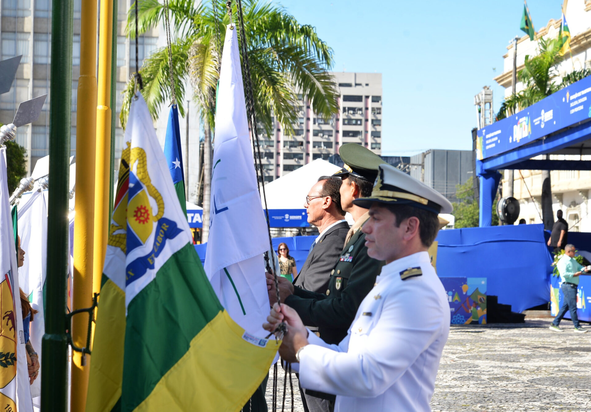 Solenidade reuniu forças armadas, estudantes e autoridades na Praça Fausto Cardoso e marcou o início das comemorações que culminam no desfile cívico de 7 de Setembro